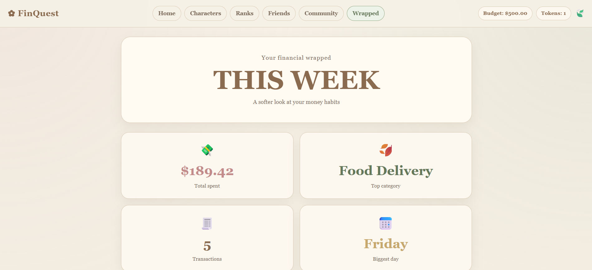 Most budgeting apps focus on numbers, but not meaning. We were inspired by how platforms like Spotify Wrapped turn data into something engaging, personal, and easy to understand. We wanted to bring that same experience to personal finance — transforming raw transaction data into a story about your habits and behavior.