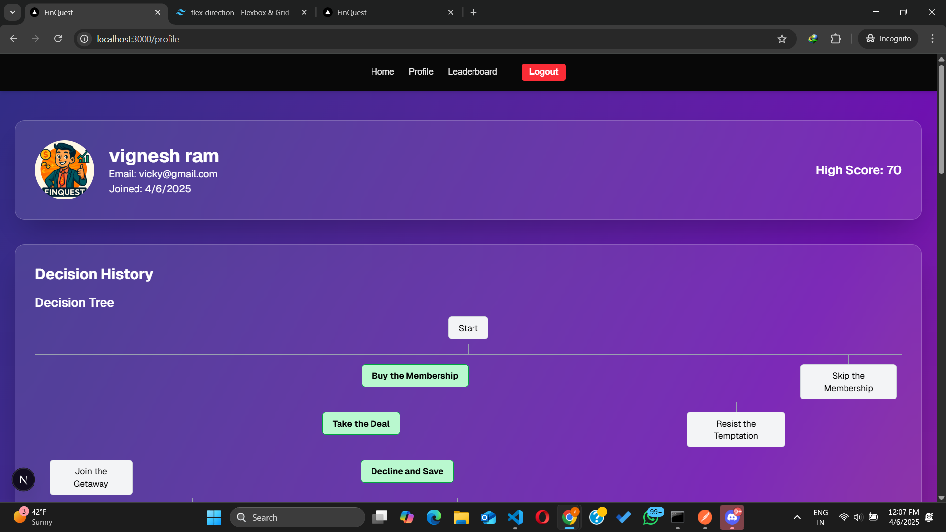 - Dynamic Decision Tree Visualization: Designing a data structure to dynamically represent user decisions and building an intuitive UI to visualize these decision trees was a significant challenge.
