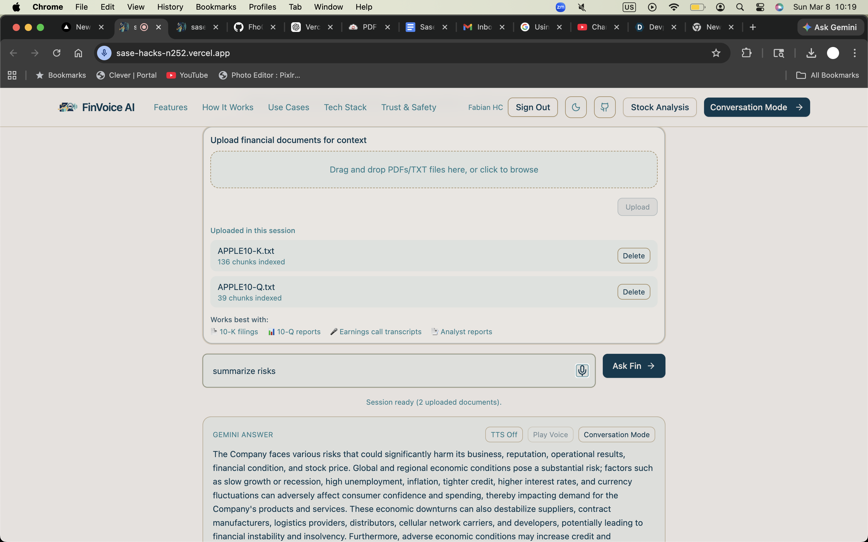 FinVoice AI was inspired by a simple problem: financial research is slow, fragmented, and often hard to trust. Important information is buried across long filings, reports, articles, and market data sources, while generic AI tools often produce answers that sound confident but are difficult to verify. We wanted to build something more useful for due diligence: a copilot that helps users move faster without losing trust, context, or source visibility.