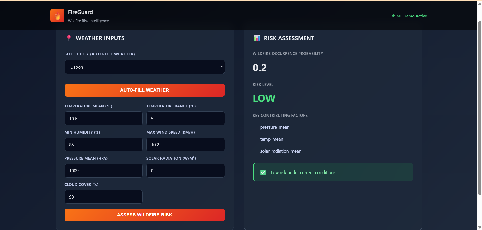 FireGuard AI was built as a full-stack ML application during the challenge period.