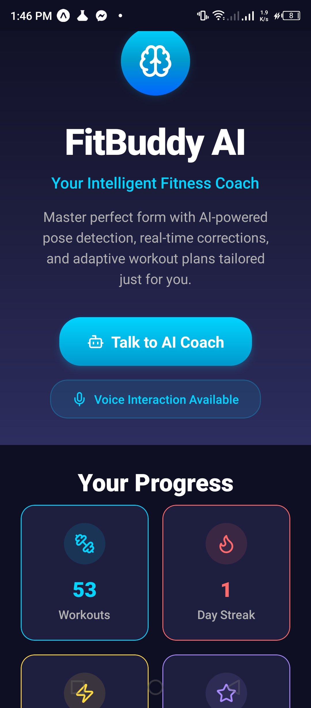As someone passionate about fitness and technology, I wanted to solve a common problem many face during workouts: improper form and posture. Poor form not only slows progress but also leads to injuries. I envisioned a mobile-first AI coach that could give real-time feedback and personalized corrections—without needing bulky equipment or expensive trainers. That vision became FitBuddy.