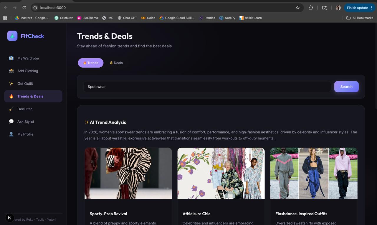 Another major part of the system is trend and shopping intelligence. I designed the project idea so that it could search the web for current fashion trends, compare products, identify deals, and recommend what the user should purchase for upcoming events while staying within a target budget.