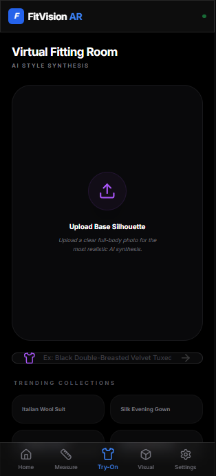 Upload any outfit or browse our integrated catalog. Our AR engine doesn't just overlay clothes on your image - it physically simulates how fabrics drape, stretch, and conform to your specific body shape. See how that silk blouse flows differently than cotton, how denim sits on your hips, how a blazer's shoulder seam aligns with yours. Spin 360°, zoom in on details, check the fit from every angle.