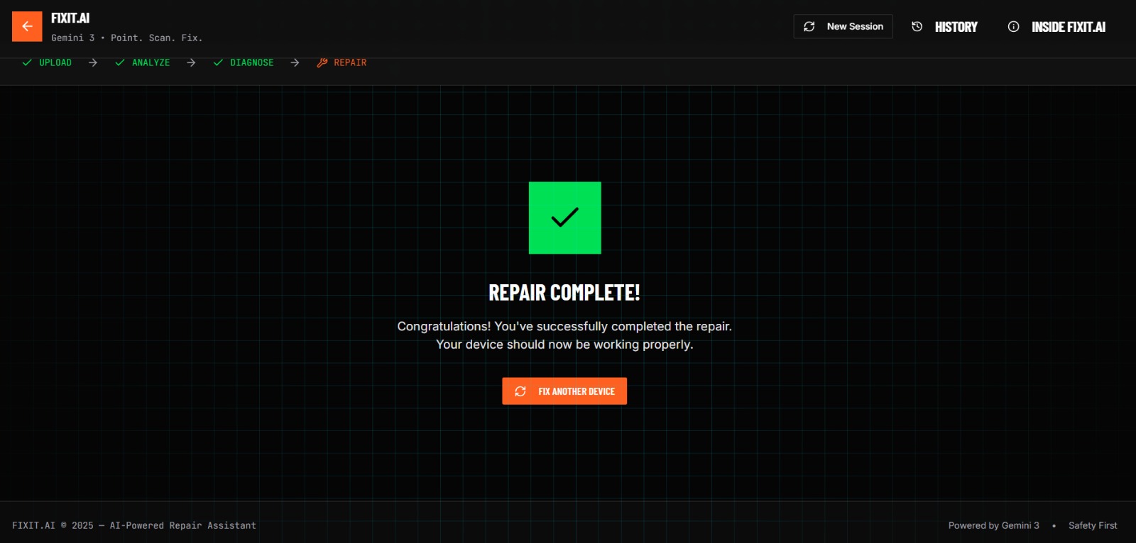 We've all been there: a broken appliance, a malfunctioning gadget, and no idea where to start. Professional repairs are expensive, and service manuals are dense and technical. We wanted to democratize technical expertise. We realized that with Gemini 3, we could create an AI agent that "sees" what you see—turning a smartphone camera into an expert mechanical engineer that guides you through repairs in real-time.