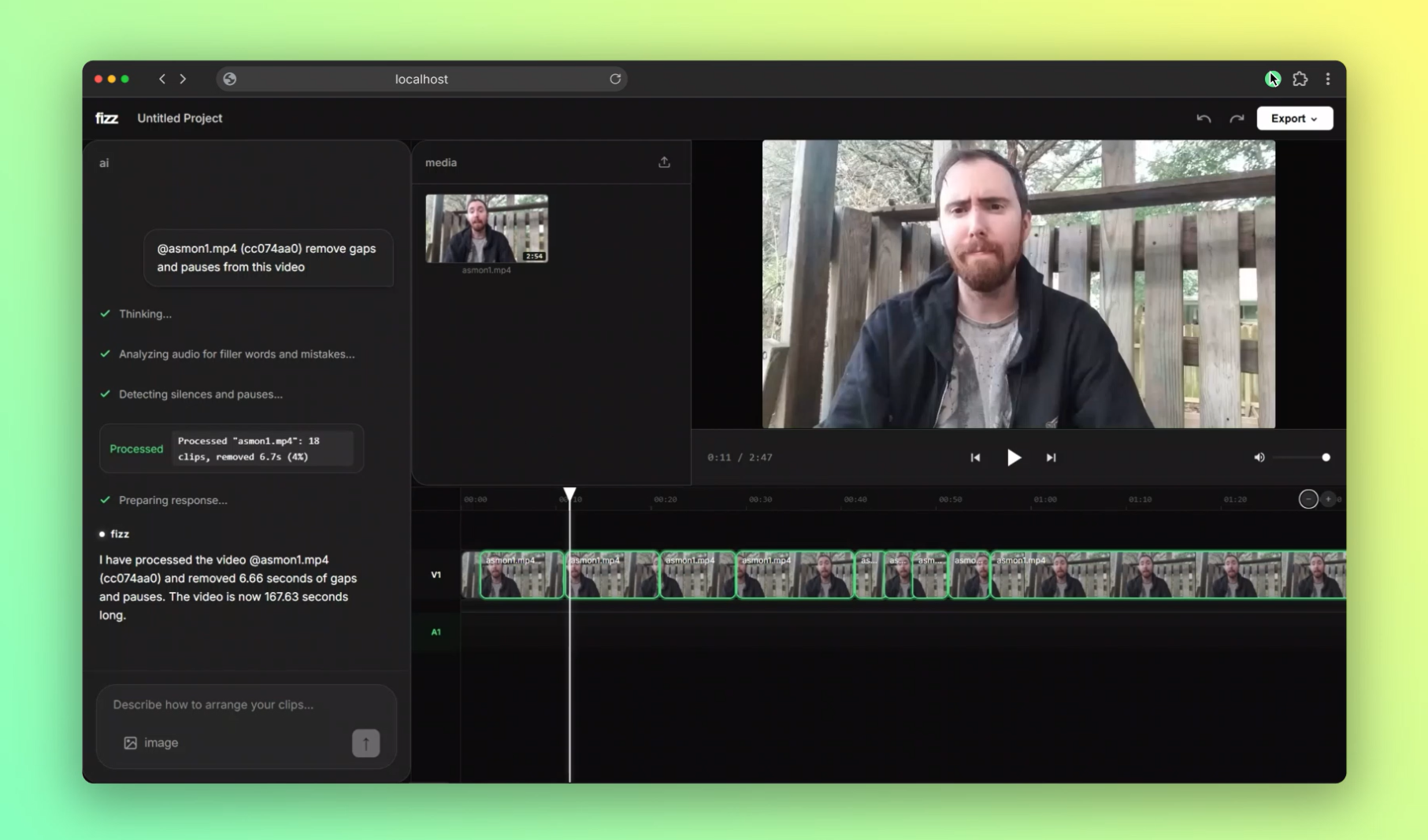 With this vision, I built Fizz: an AI-native video editor where natural conversation replaces menus and manual labor.