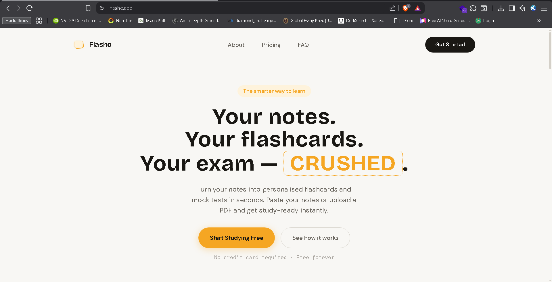 Flasho lets students paste any topic or content and instantly generates AI-powered flashcards and mock tests in seconds. What used to take hours now takes 10 seconds.