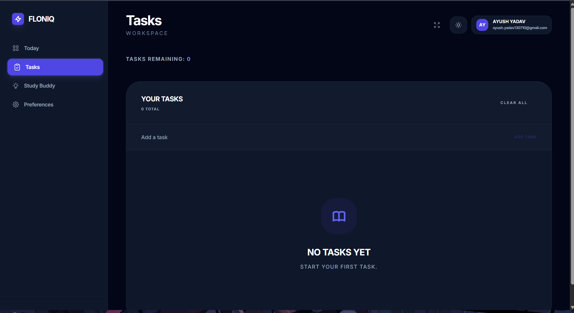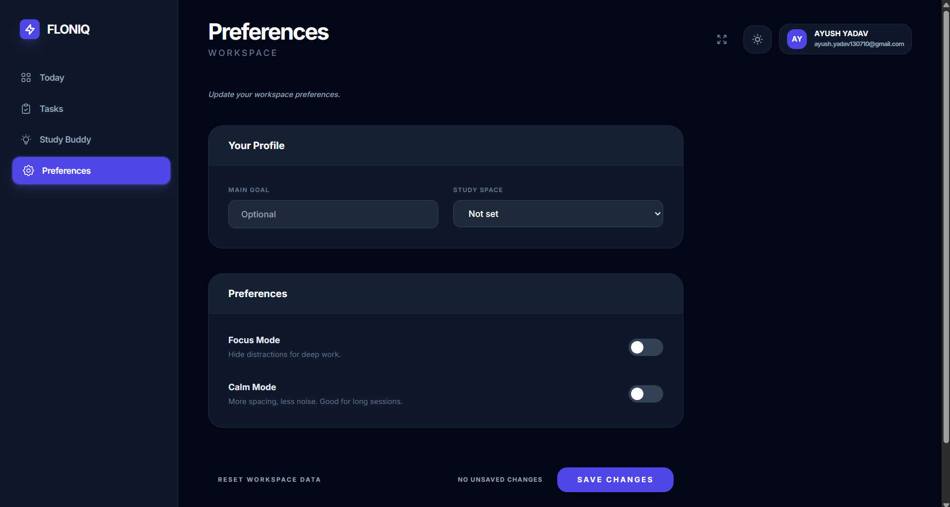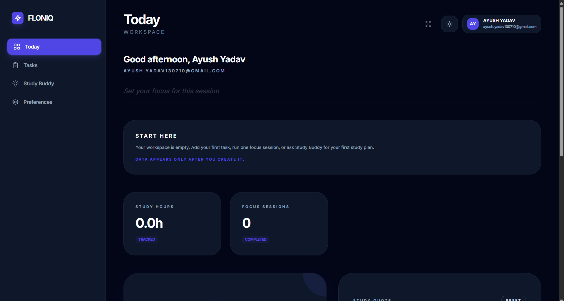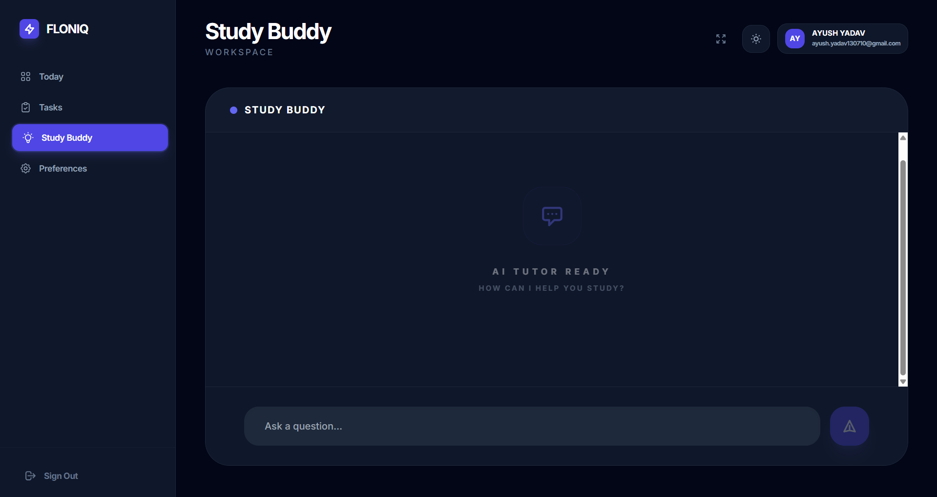 FLONIQ is a minimal student workspace designed for focus and consistency.