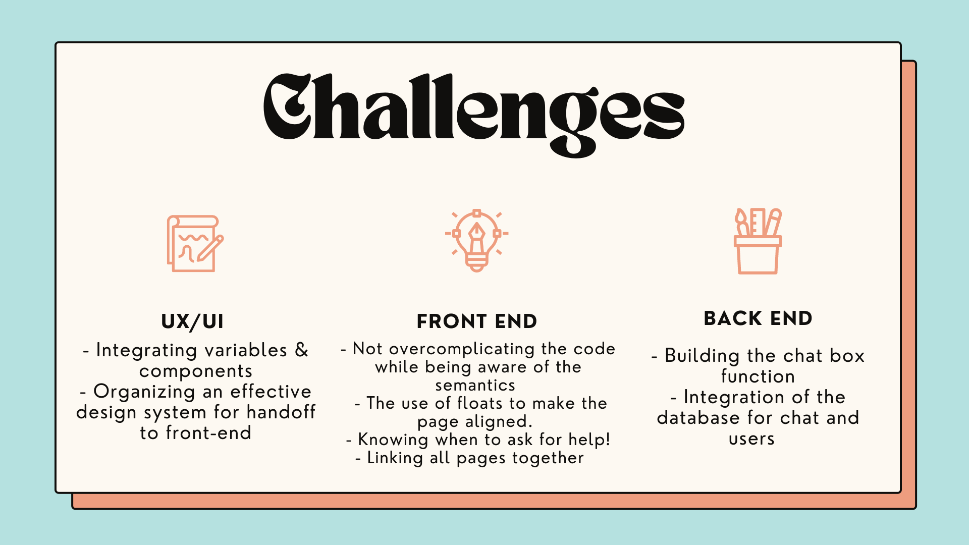 We can definitely understand how an app implementation like this is not a walk in the park so setting up the routes on the backend and time management were areas that we ran into developing our project. Also, the correlation between front-end and back-end was a bit tricky to navigate since our team had two people on UI/UX development and 2 on Back-End/Front-End, so it was hard to navigate the starting layer to the building the site.