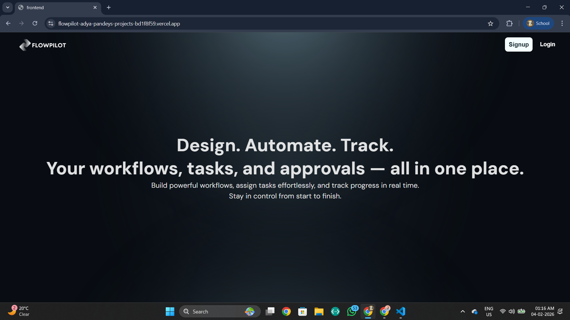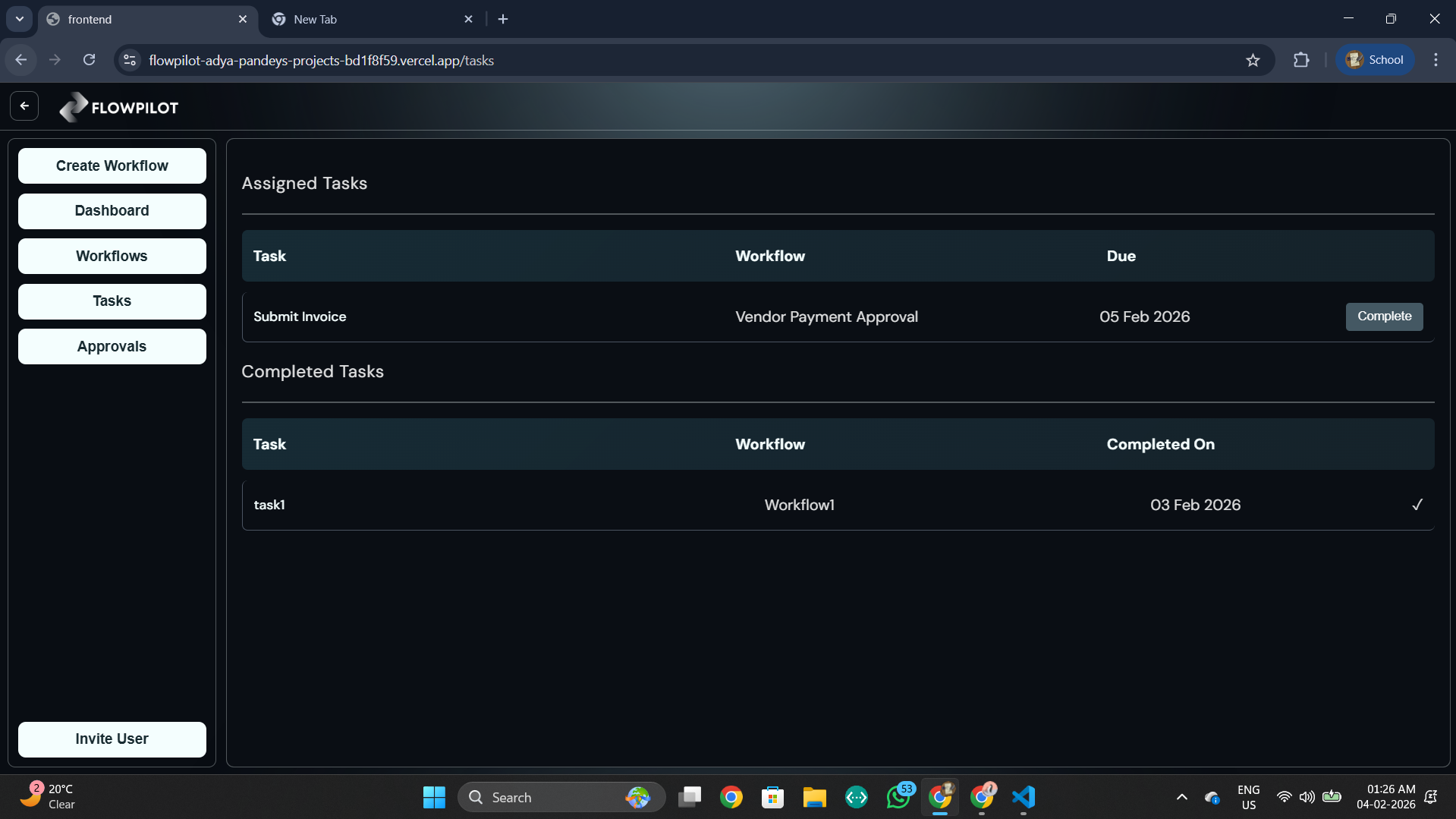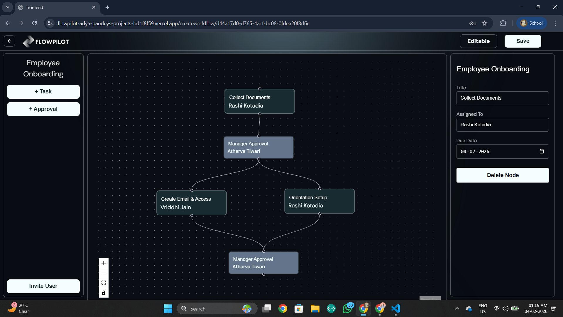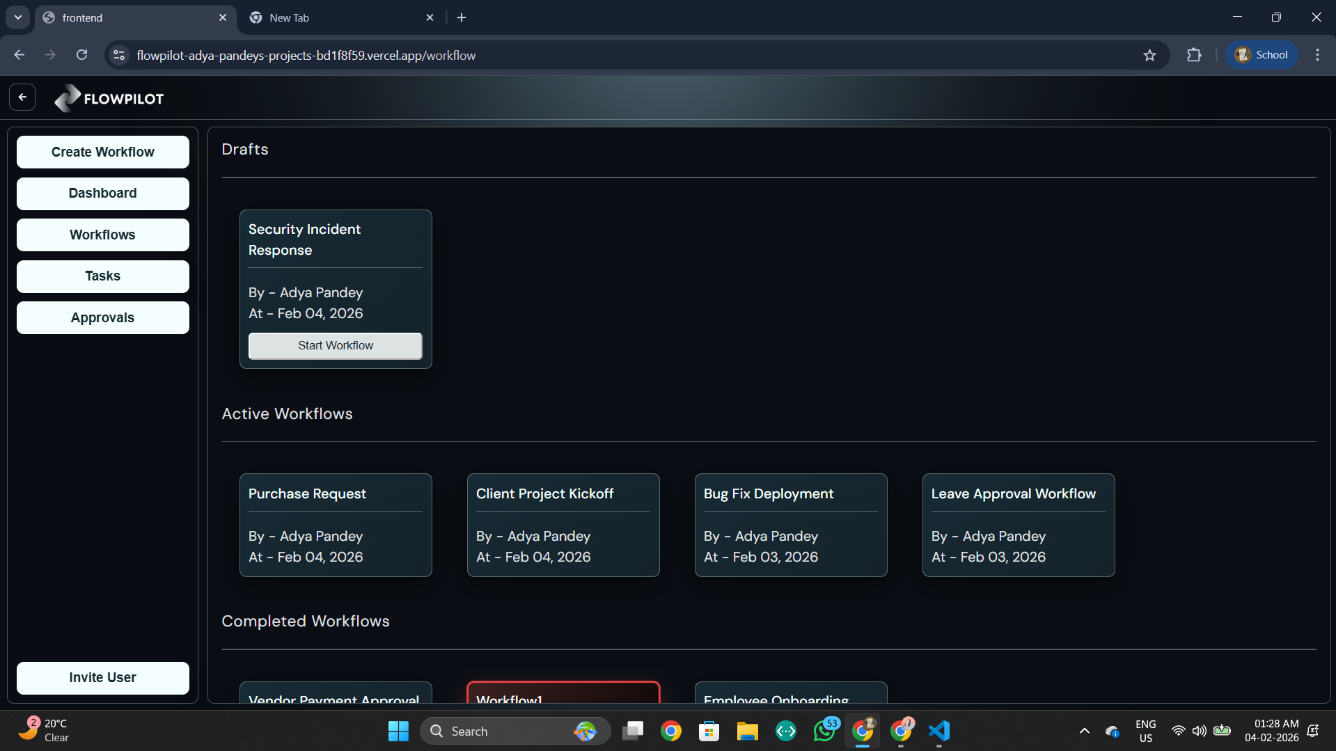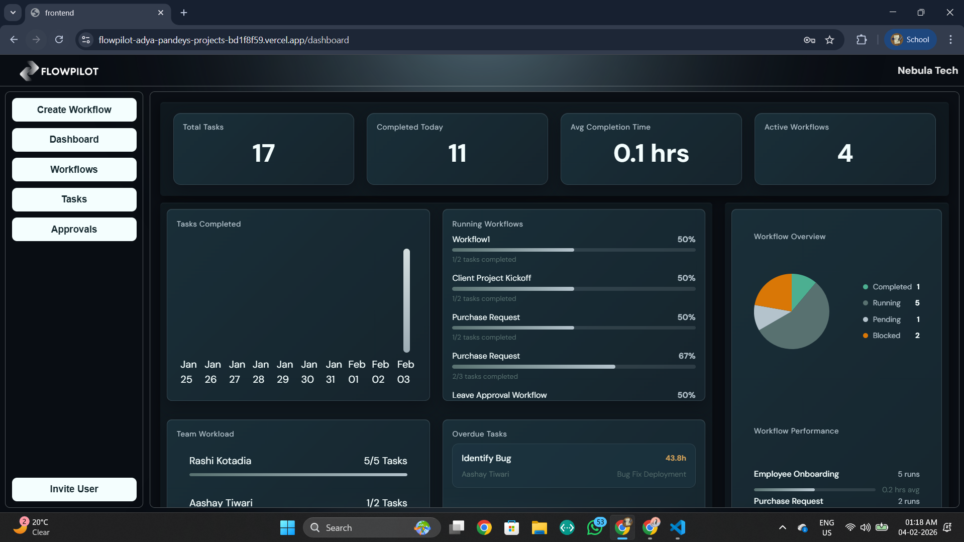 FlowPilot allows organizations to visually design workflows, assign tasks, manage approvals, and track execution in real time from a single dashboard.