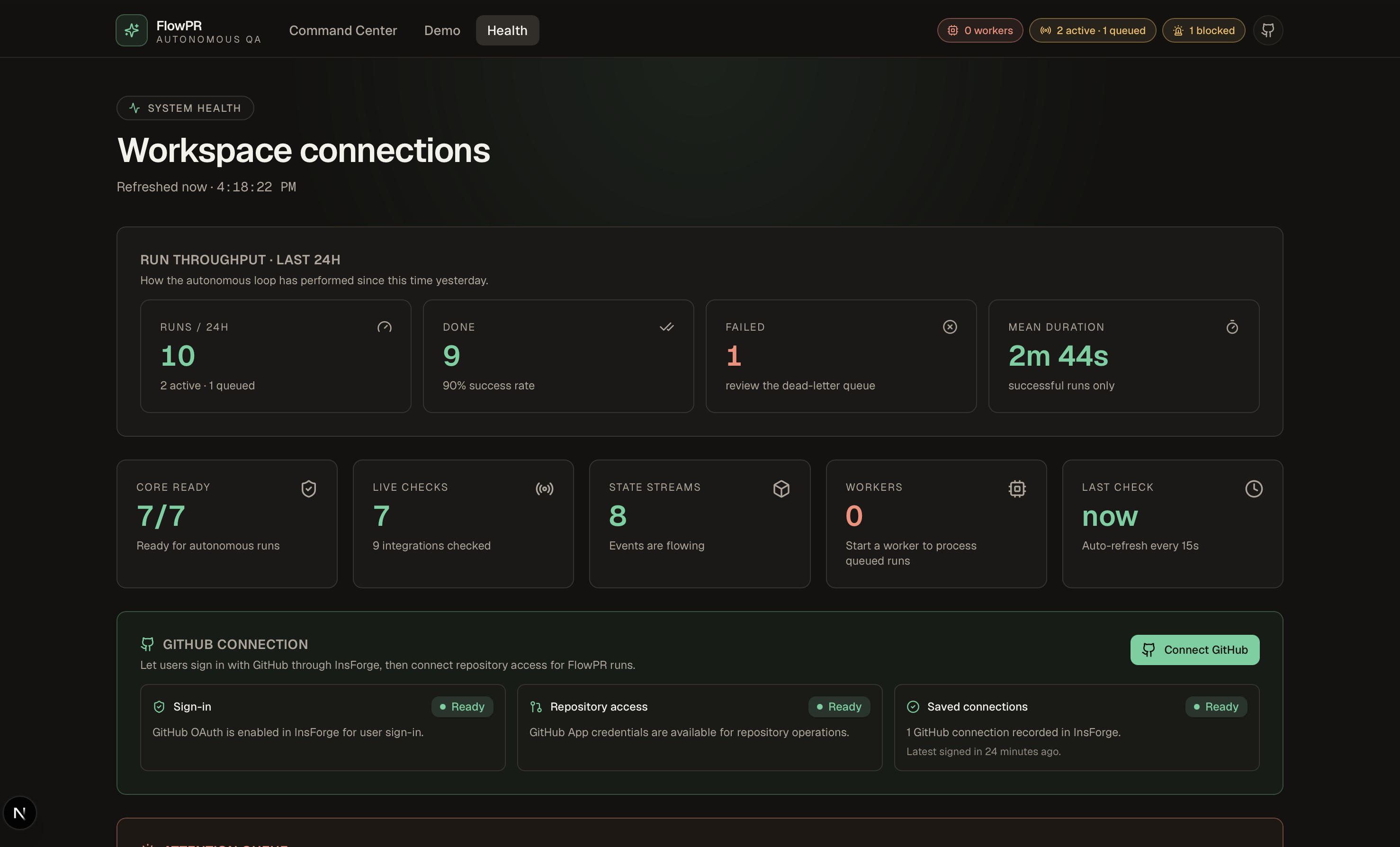 The goal was to make FlowPR feel like a practical assistant that fits naturally into how developers already work.