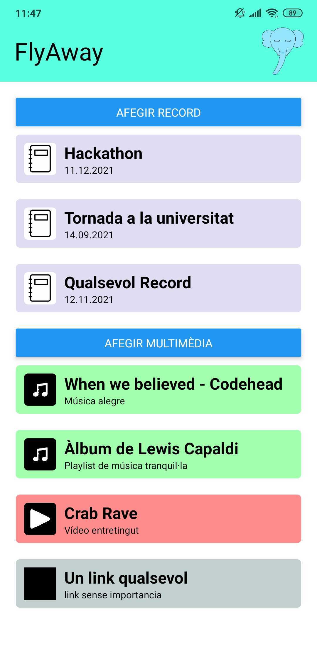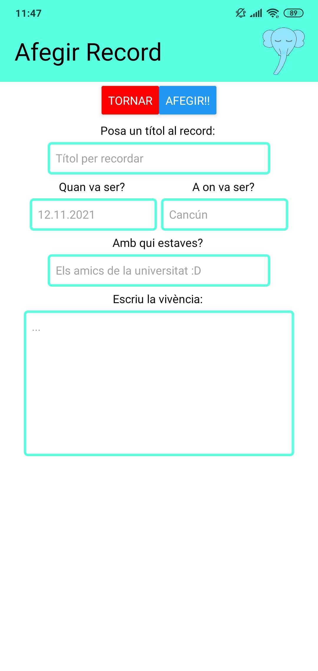 En la nostra aplicació intentem agrupar bàsicament dues eines per tal de millorar el nostre estat d'ànim. Tant per experiència personal com per coneixements obtinguts en les xerrades que hem assistit al llarg de la Hackathon, hem intentat implementar en la nostra app dues vies d'animar-nos en els pitjors moments per tal de poder continuar endavant i superar aquell període de tristor. Una de les maneres que considerem fonamentals per animar-nos és usar records, moments que ens han alegrat, ja siguin petites coses en moments puntuals o un seguit de dies en alguna excursió o viatge. Aquests tipus de memòria són el que el nostre aplicatiu permet recollir, amb diferents preguntes de resposta curta per poder tenir un simple guió que ens permetés rememorar aquests moments. Tot i això, és evident que no sempre ens ve de gust tirar enrere en el temps, sinó que preferim rebre energies externes per poder continuar endavant. Aquesta energia pot provenir d'alguna cançó, algun vídeo o algun altre recurs multimèdia que nosaltres sabem que ens ajuda. Per aquest motiu, la nostra aplicació permet recollir aquest seguit de recursos, els que vulguem, per tal de tenir-los a mà en els moments que els necessitem.
