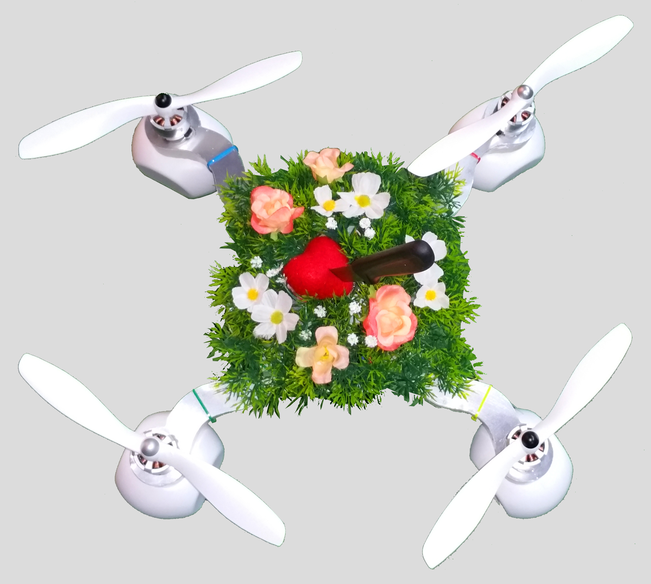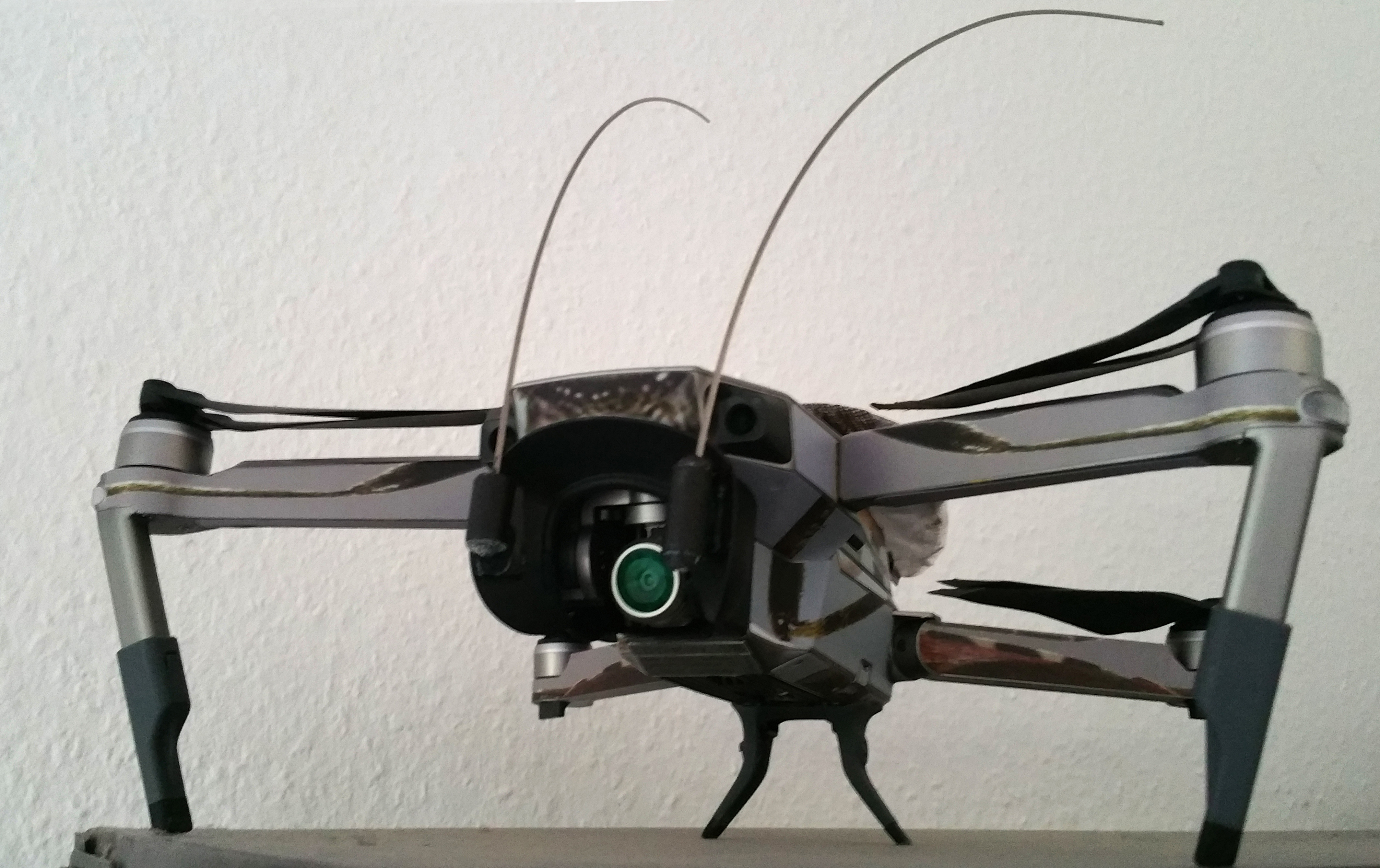 Related projects: Fantasy Drones: "flying mods" (link are post-technological meditations of multi copters, visual extraordinary exciting objects, which act out the artistic fascinating ideas of the may possible interpretations of the design of the drone. A lot can be done with the countless, seldom flown and deadly boring quadcopters forgotten in hobby basements or high up on boys wardrobes. It is about time, that commercial high tech products such as drones and robots are not just toys or weapons, but are also caught up by the fine arts. Newly bought multi copters are generally quite ugly as they come out of the box. Either they look similar to malformed white GRP amoebas or are like black carbon insects from a distant SciFi galaxy. With cardboard, Styrofoam, balsa wood, paper mâché, Epoxy and fabrics, felt, feathers or paints and some creativity i want to fashion the outer appearance of the copter completely after my own taste, while making sure, they still fly. LED strips managed by the flight controller can conjure up the most fantastic light effects especially on an evening sky.