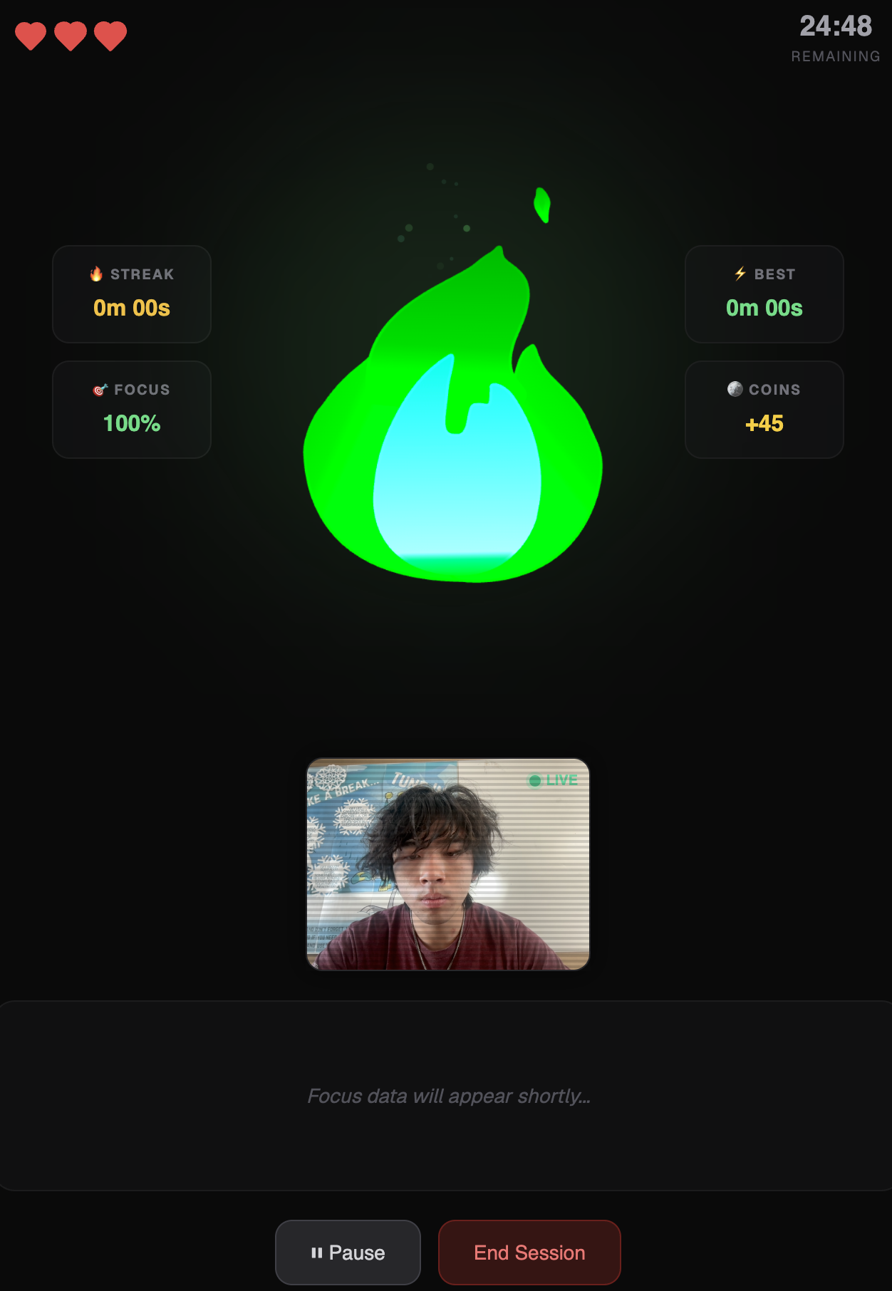 Every focus app today solves the same problem the same way: block distracting websites. But what happens when a student just picks up their phone? Or falls asleep? Or walks away entirely? Software-level blocking only controls one device — it can't tell if you're actually focused. I wanted to build something that watches the student, not the screen.