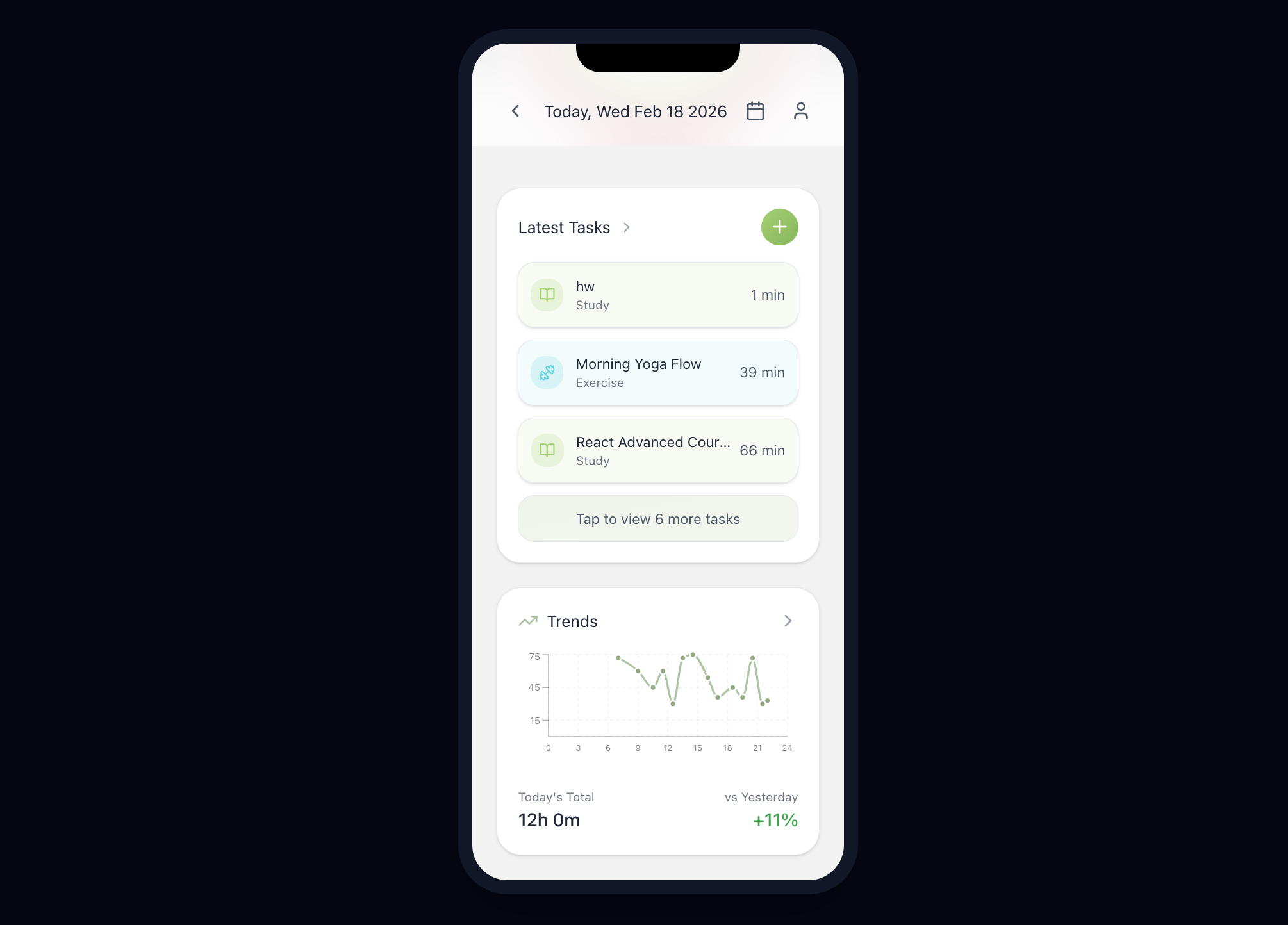 - Humanizing the Timer: We had to completely rethink traditional tracking patterns to create a "forgiving" system. Our goal was to build a tool that handles the messy reality of human interruptions without breaking the integrity of the data, ensuring the user feels supported rather than judged by a stopwatch.