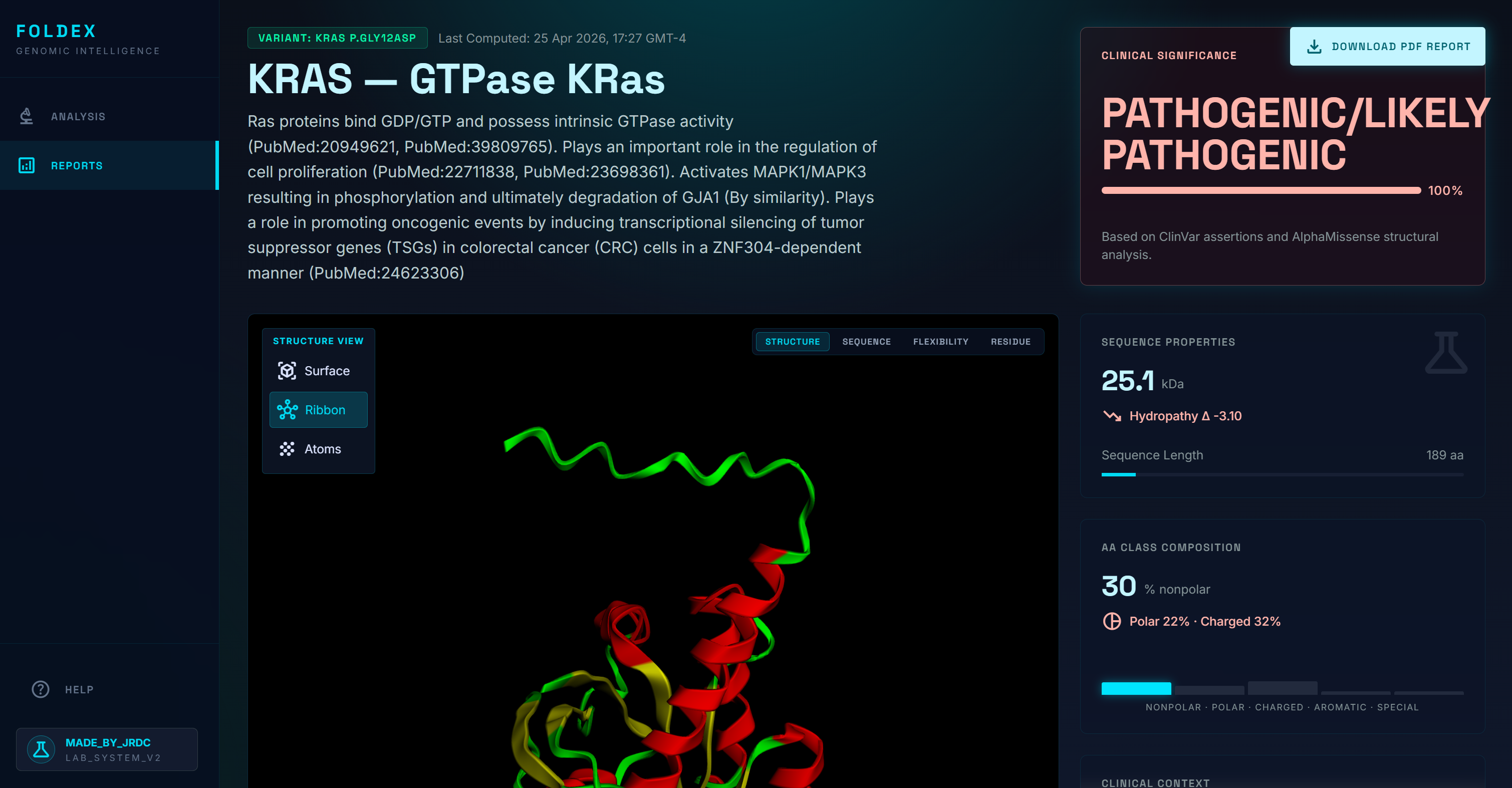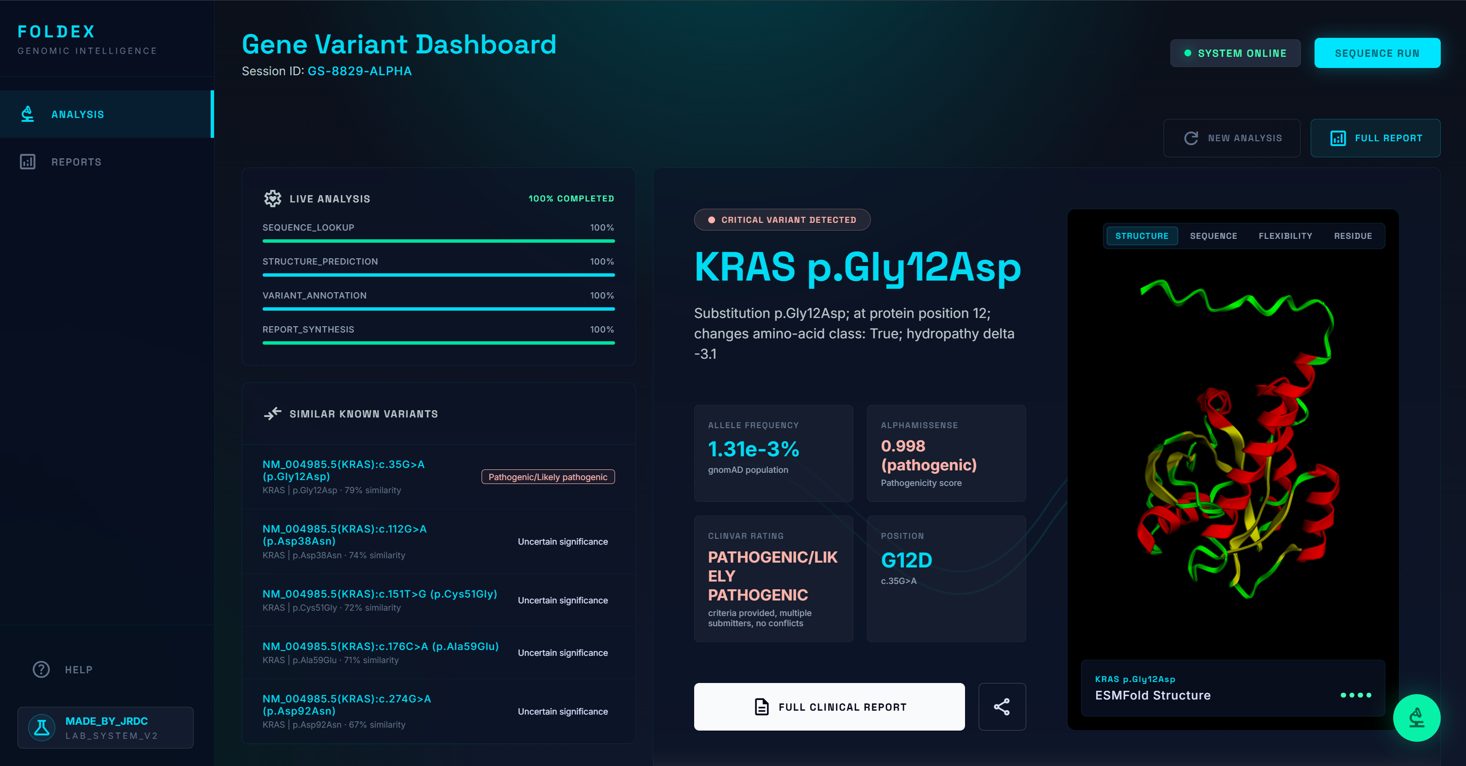 FoldEx accepts a single gene variant and produces a complete research-support report in under two minutes.
