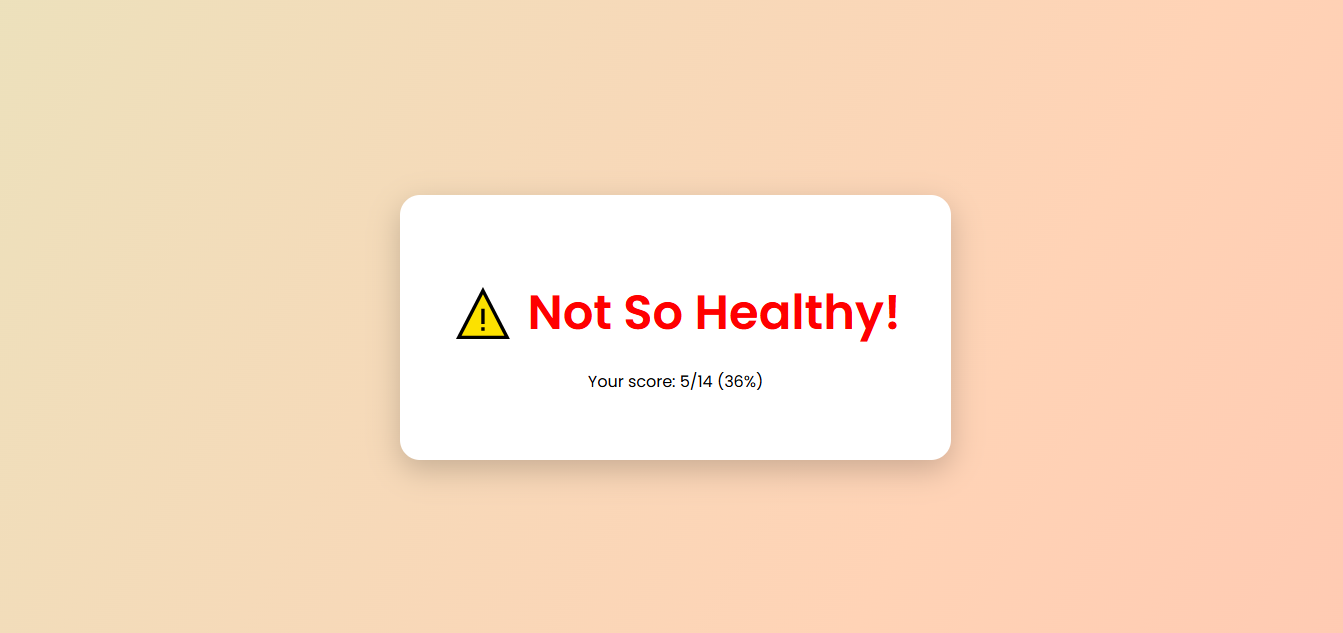 With so much information about health online, it’s easy to get lost. I wanted to create something simple, quick, and fun, a website that asks just 14 health-related questions and then instantly tells you whether your lifestyle leans towards healthy or not-so-healthy.