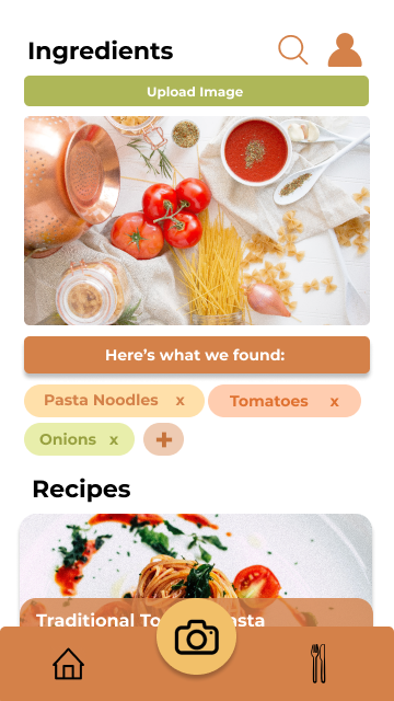 Our app allows users to take a photo of ingredients that they already have which are then identified and listed out. Then, the user will be provided a list of possible recipes with links to those recipes. This app allows any user to take a picture of the ingredients he/she has.