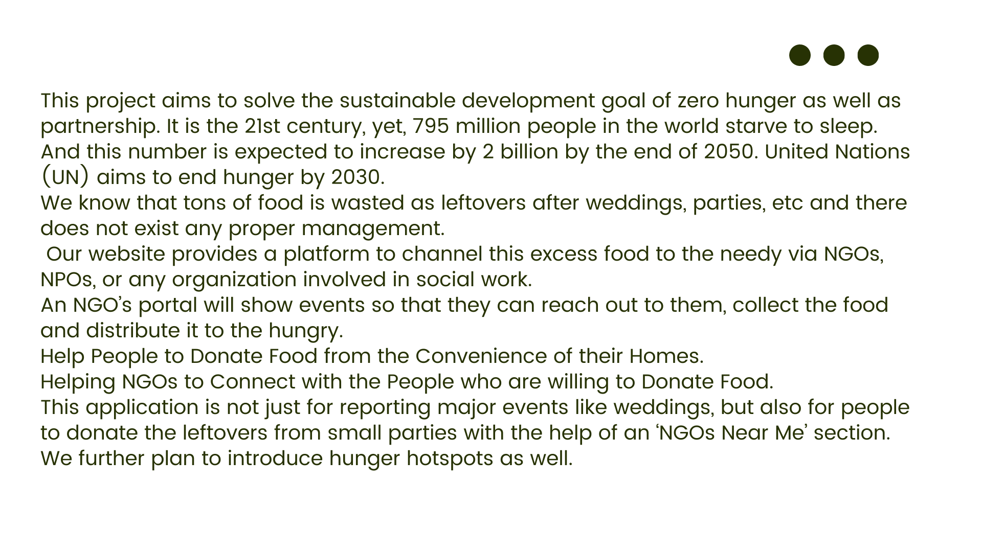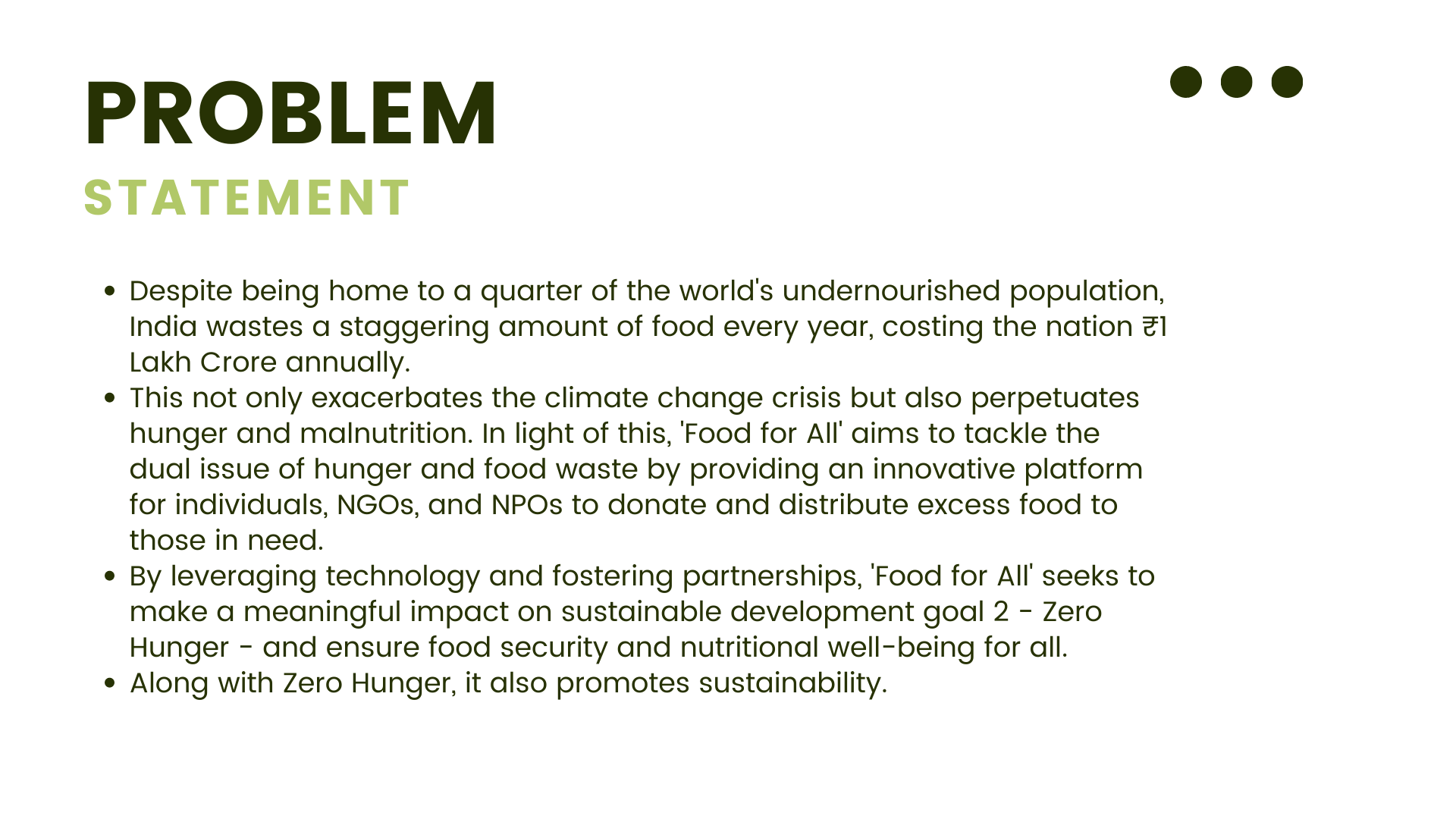 The inspiration behind Food For All was the need to tackle the issues of food waste and hunger in India.