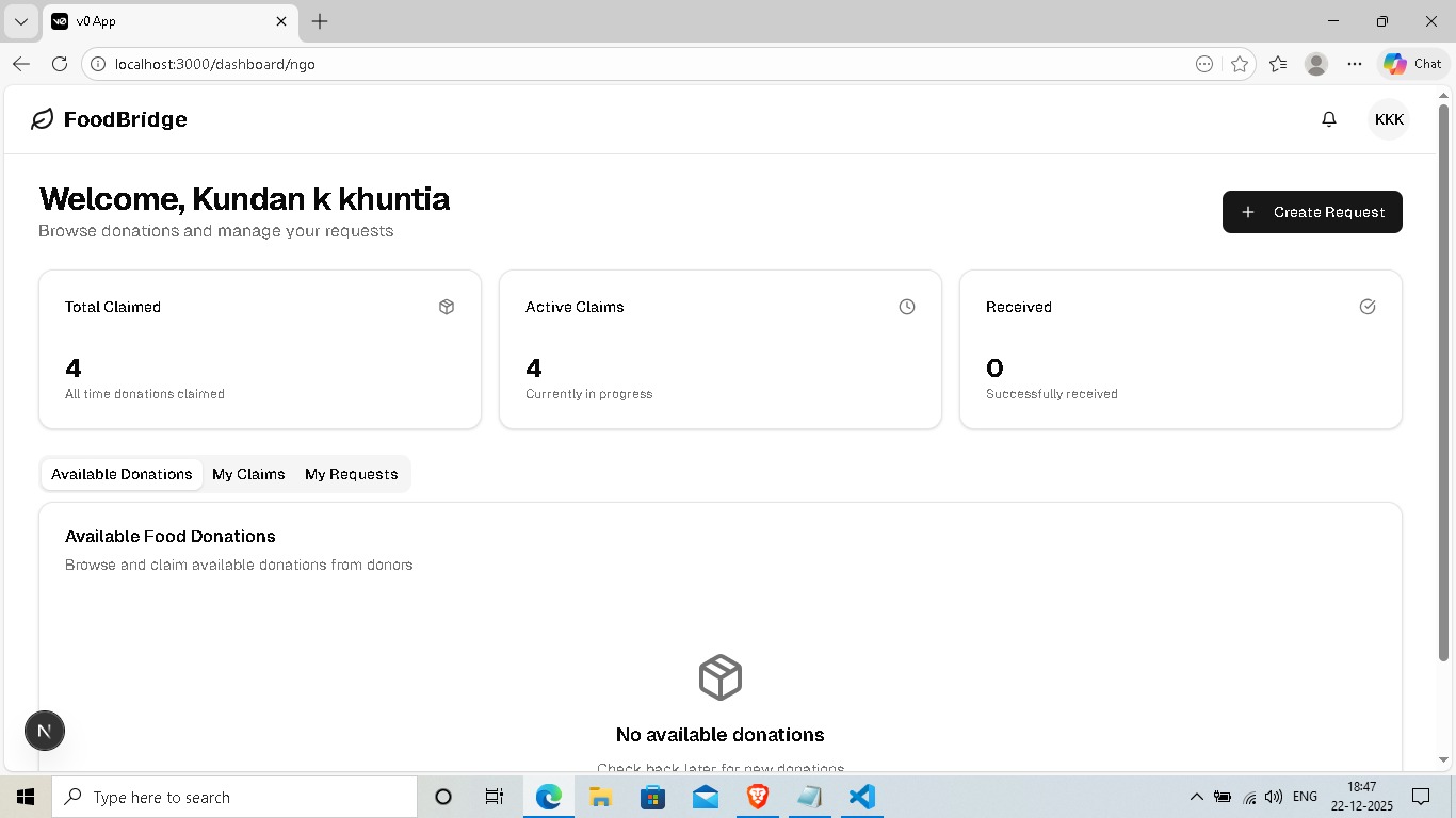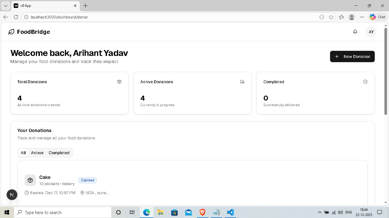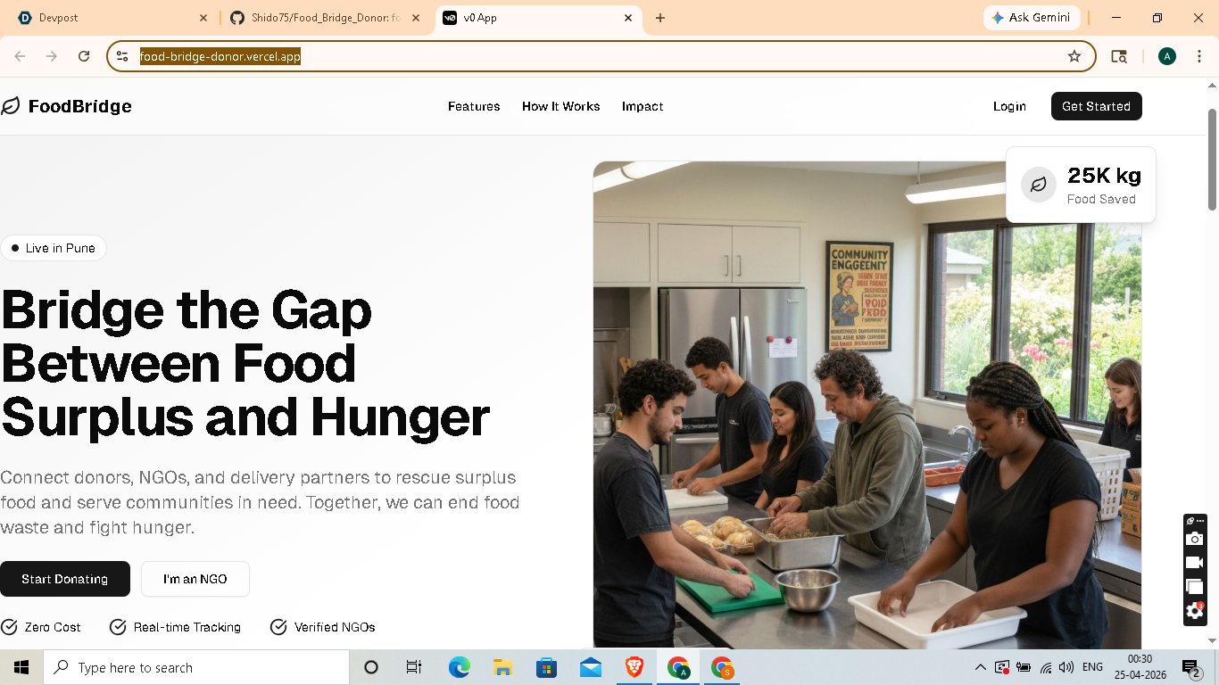 FoodBridge: A 3-sided logistics engine for Pune built to eliminate urban food waste through automated verification and live tracking.