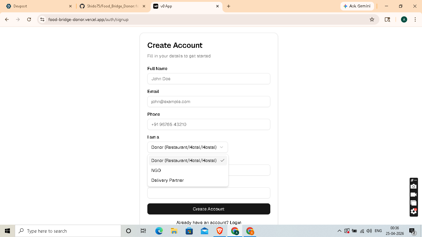 So I started FoodBridge. The goal is to use technology to fix this. We can turn food waste into a solution by connecting donors and people in need in real time.