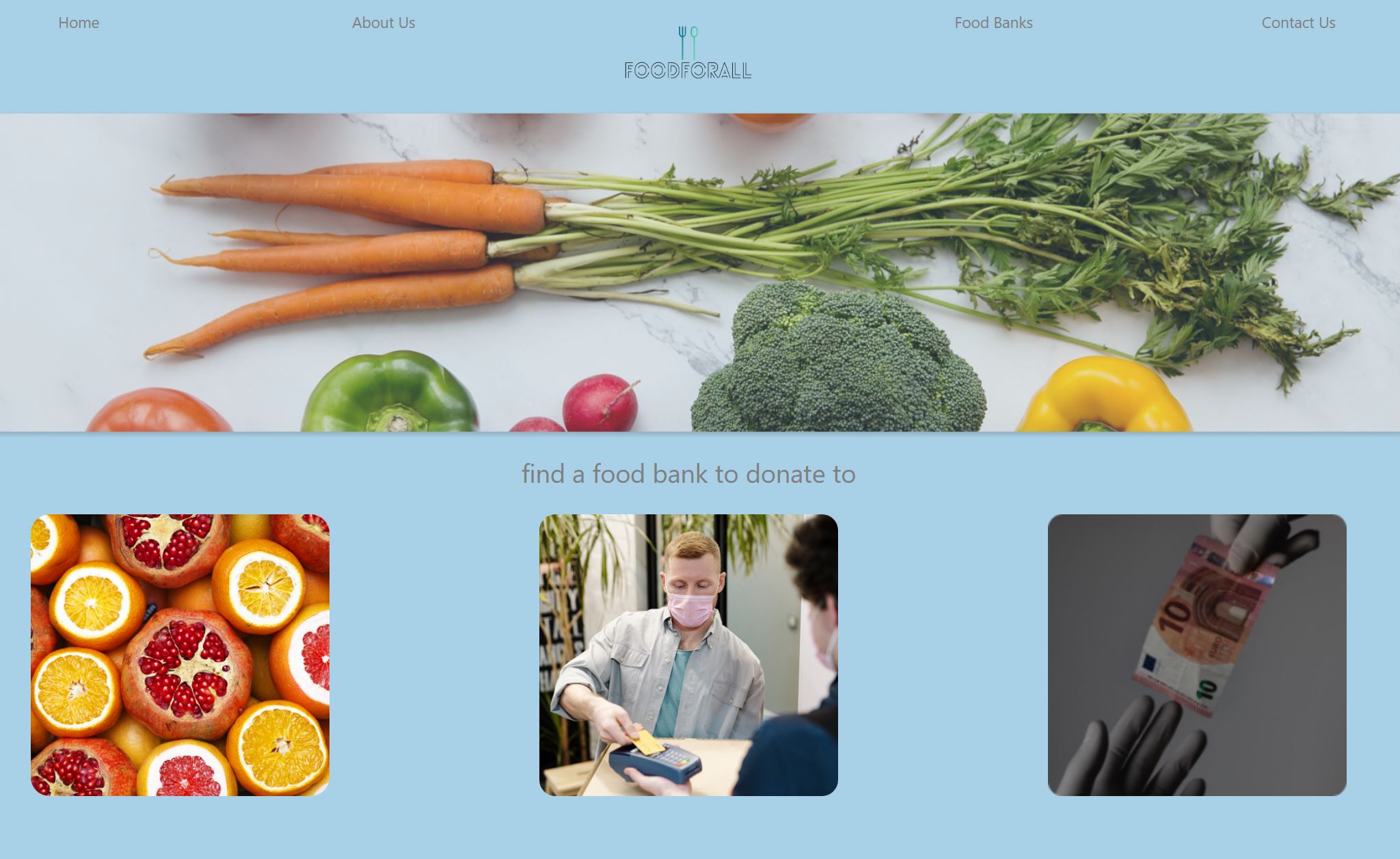 Food insecurity is extremely prevalent in Indianapolis. Around 20% of Hoosiers living in Indy live below the poverty line, meaning they have limited access to the food needed to sustain themselves. Unemployment rates in Central Indiana have skyrocketed due to COVID-19, causing many more Circle City residents to struggle to put food on the table. Additionally, food and monetary donations from grocery stores, farms, supporters, etc. have rapidly declined. To make matters worse, many older volunteers have stopped volunteering because of the dangers of COVID-19. This perfect storm has left food pantries lacking food, money, and volunteers at the same time that the COVID-19 pandemic has driven up unemployment numbers. To help food banks meet the needs of their increasing customer base, we developed a website that would allow individuals to donate money, food or volunteer services to food banks that were in need, allow those food banks to request the food/support/money they need, and allow the food bank customers to easily discover the food available near them. Our product will help alleviate some of the serious shortages that food banks have been facing due to COVID-19; from food to monetary donations, to general support, as well as allow those in need to combat the food insecurity they face on a daily basis.