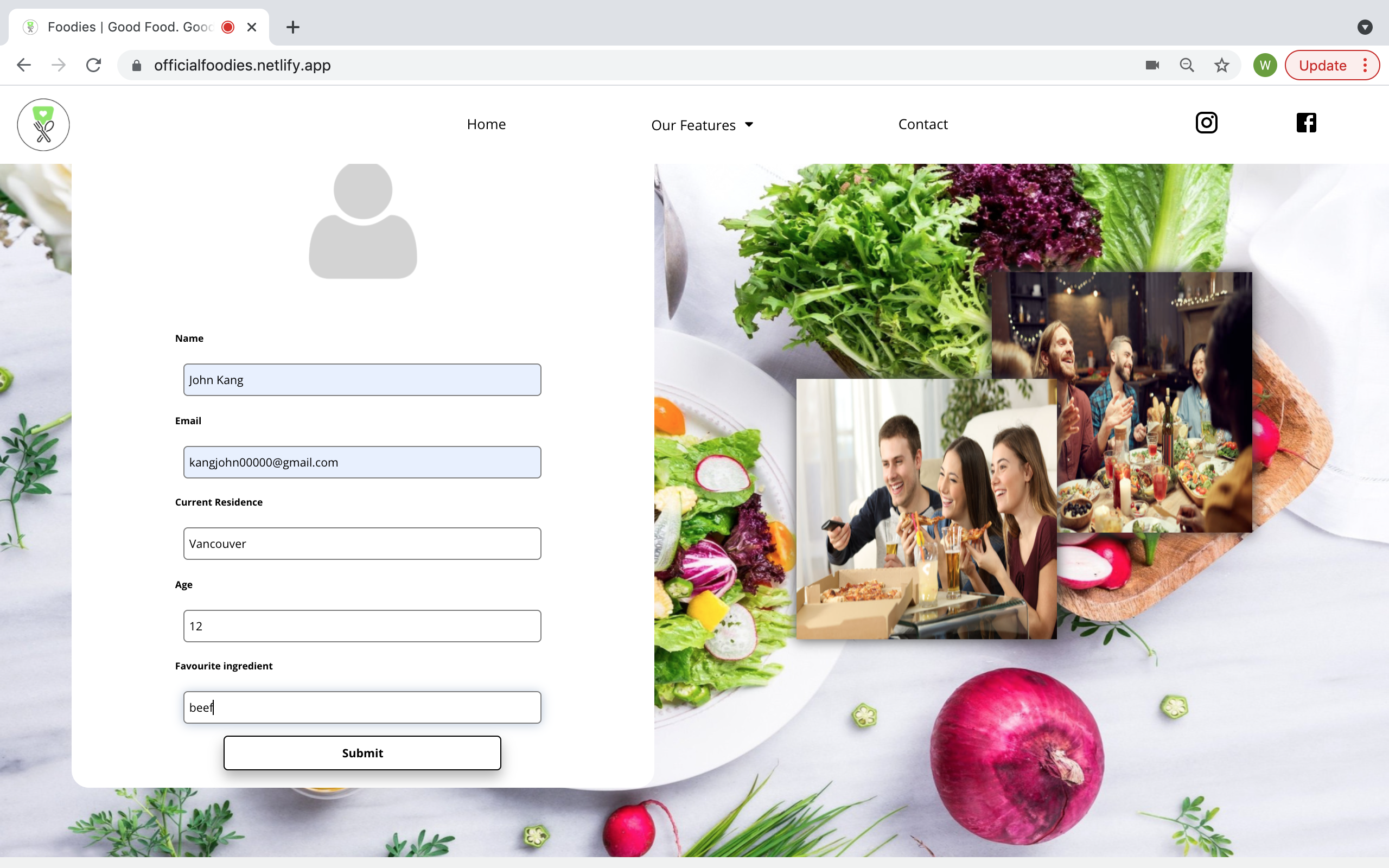A relationship starts from knowing each other's similarities and eating the perfect food together. While thinking of all the problems that are happening to me personally and in the community due to the pandemic, there was 1 significant problem that stood out to me: Relationships and food. The pandemic has shutdown many restaurants and restricted people from creating relationships from the quarantine. This has prevented many people from meeting new people and spending their time with the people they love and value, but also having a great meal with the people they love. Foodies solves that problem by virtually matching people with others near their location based on their favourite meal type and cuisine type.