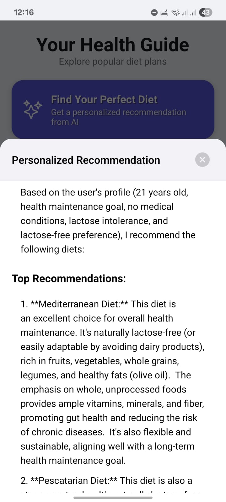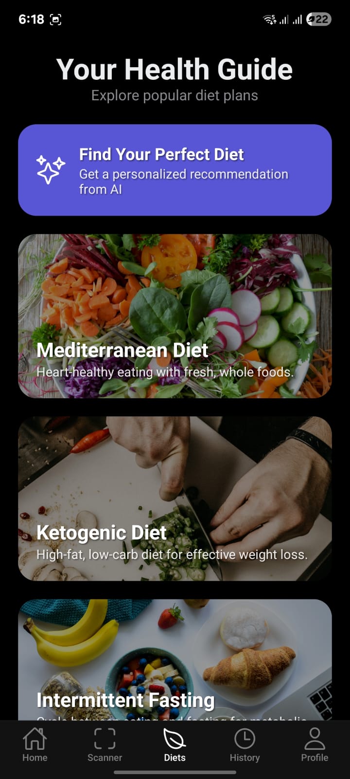 Explore popular diet plans or let our AI find the perfect one for you based on your unique health profile and goals.