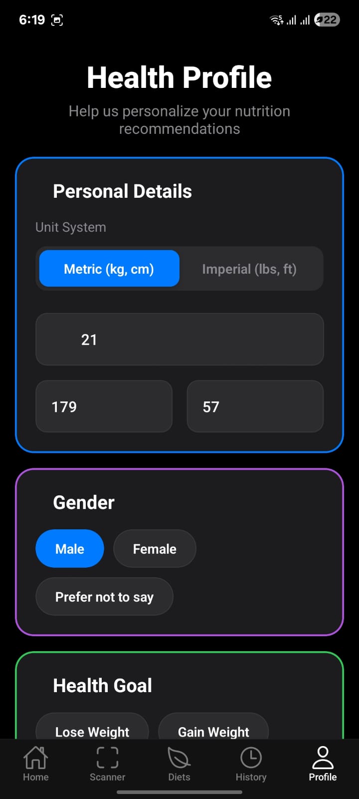 Foodyzer was born from this challenge. As a Food Engineer, I wanted to cut through the noise and create a tool that translates complex data into clear, personal, and actionable advice. The vision was simple: what if your phone could act as a personal nutritionist, telling you not just what's in your food, but what it means for your unique body?
