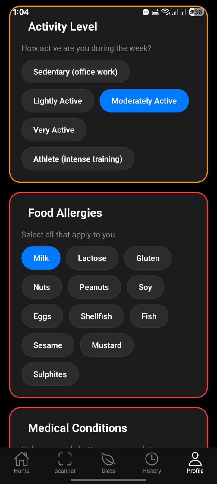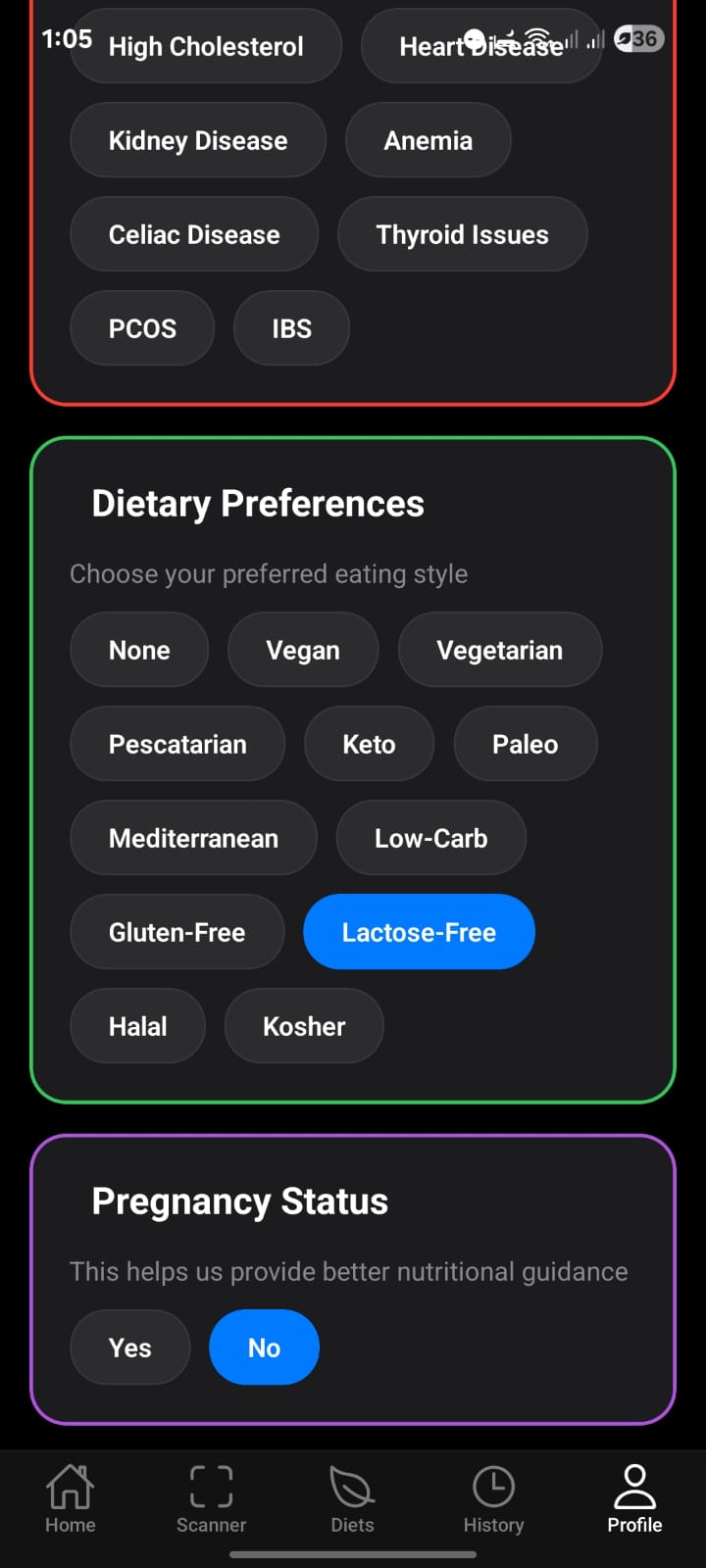Your hyper-personalized experience starts here. Set your goals, allergies, and medical conditions to get advice tailored just for you.