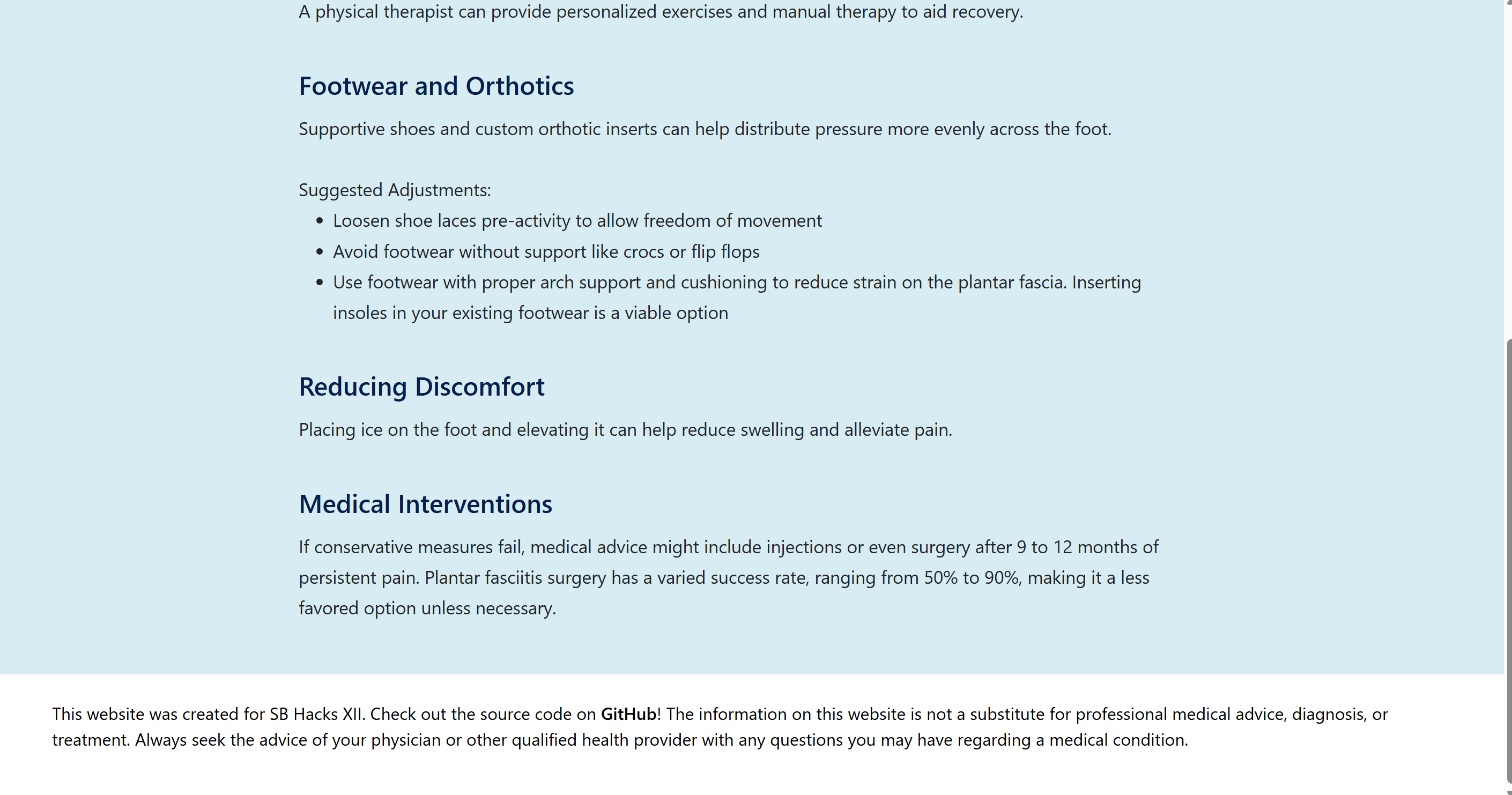 During high school, one of our group mates (Rahul) had the opportunity to work with Plantar Fasciitis for his senior capstone research project. Being a competitive speedskater, his training was put on a halt when he started experiencing sharp pain in the soles of his feet. With nothing working after experimenting as well as visiting multiple specialists, he took this topic as his Senior project to understand the deeper mechanics of muscle sole inflammation.