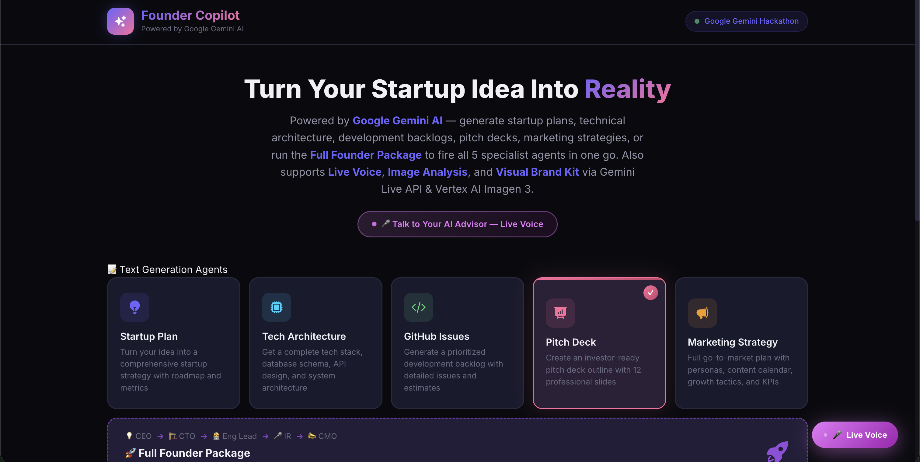 Our long-term goal is to evolve Founder Copilot into a complete AI cofounder assistant that helps builders move faster from ideas to real products.