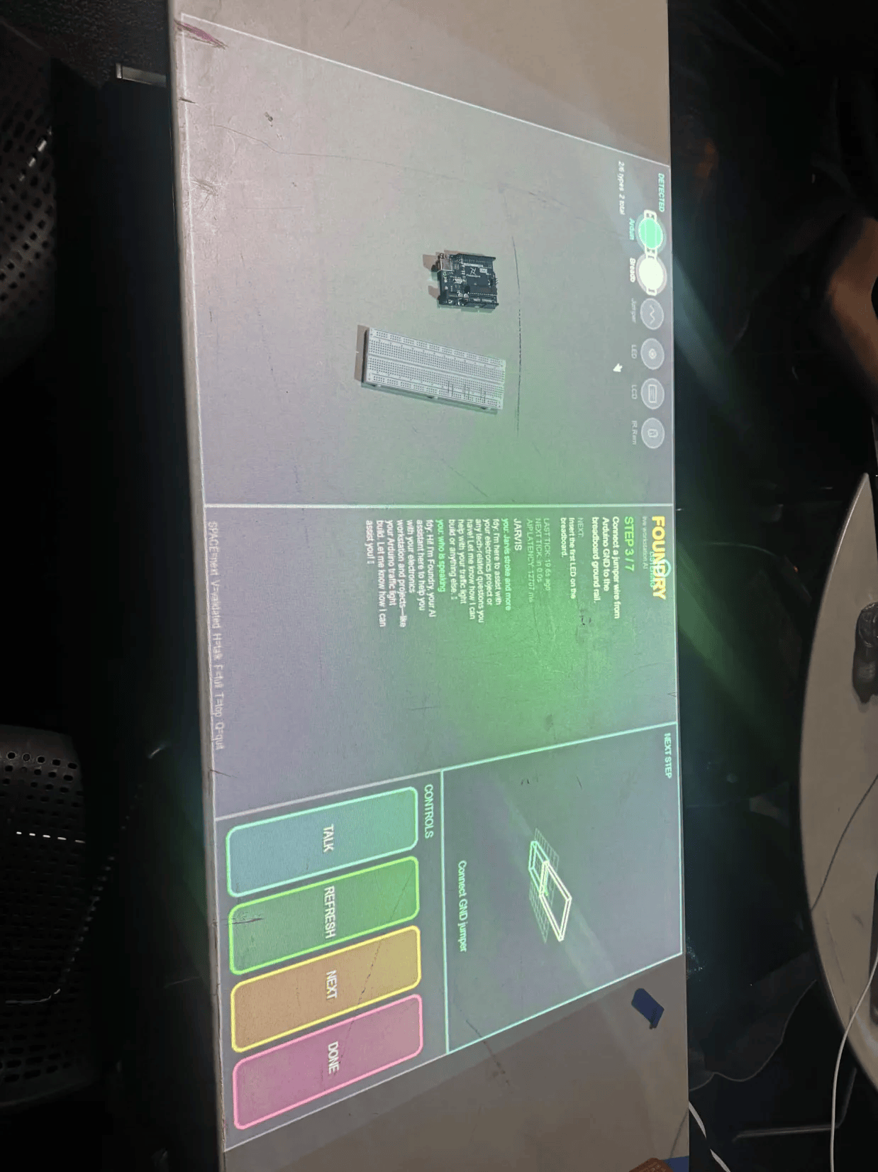 Hardware development today is slow and fragmented. Builders constantly switch between tutorials, guess connections, and debug blindly without real-time feedback. We wanted to eliminate that friction by turning the workspace itself into an intelligent system—something closer to a real-world “Jarvis” that understands what you’re building and guides you as you build it.