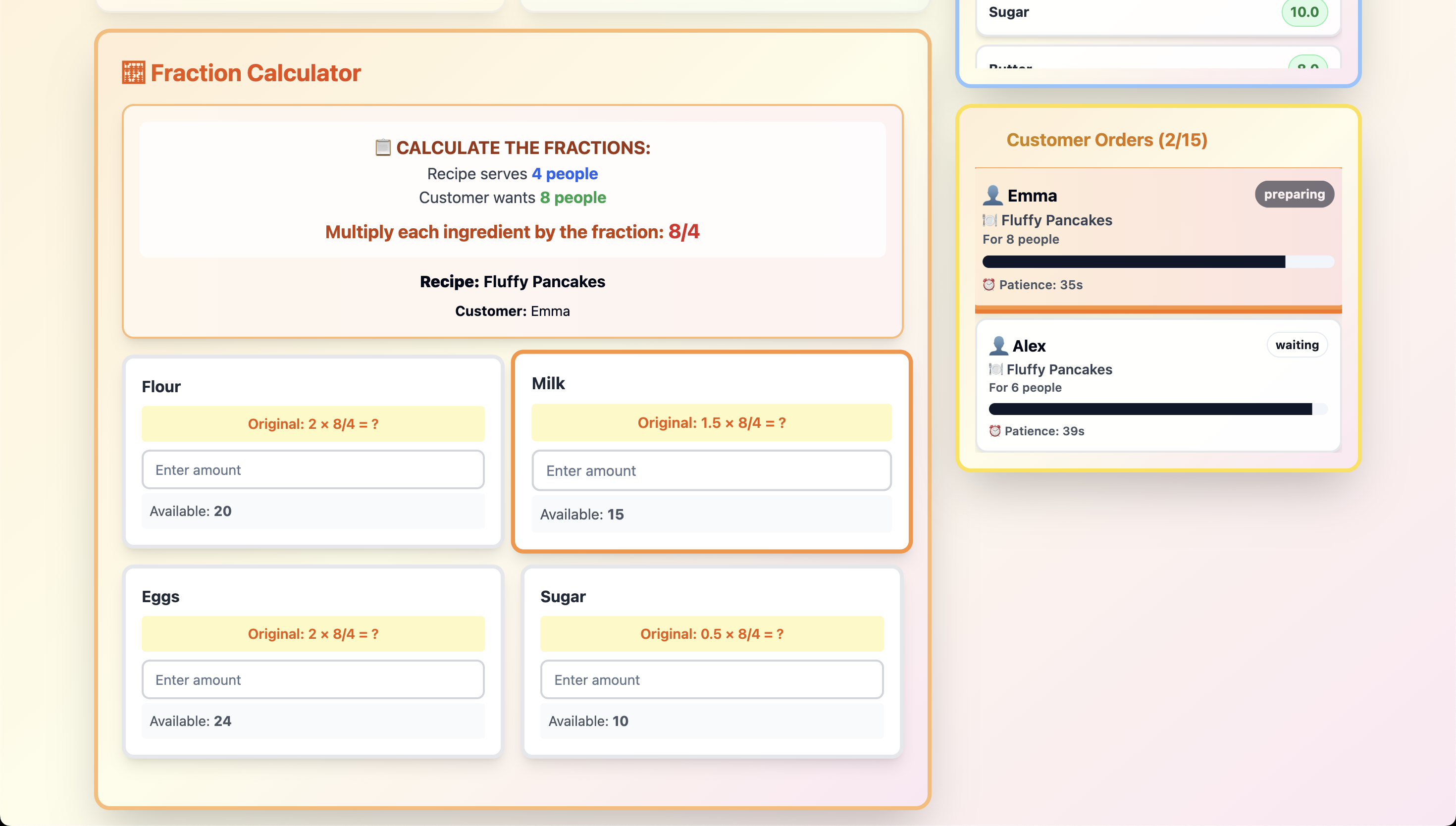 - Adding more recipe complexity and fraction types