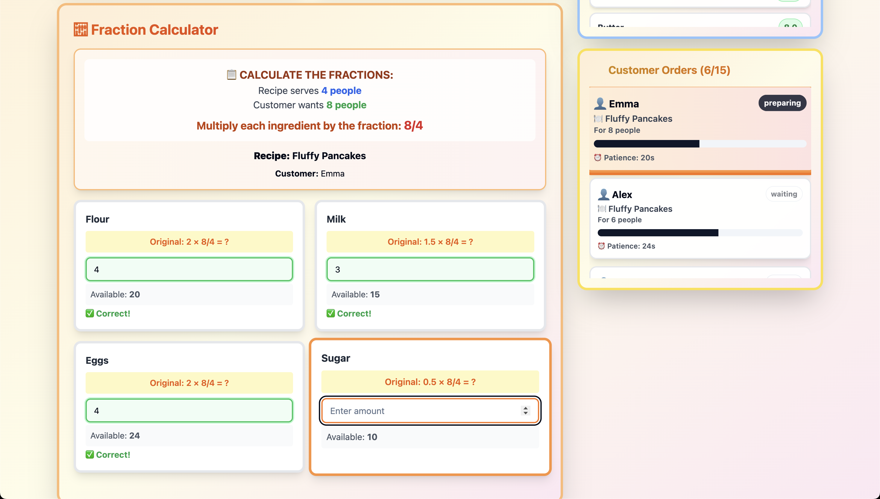 We were inspired by the idea of combining real-world scenarios with educational content to make learning feel natural and fun. Cooking and fractions are a perfect match — in real life, recipes often require adjusting measurements, which involves fraction multiplication. We wanted to gamify this everyday challenge and turn it into a fast-paced, rewarding experience that helps players build math confidence while having fun.