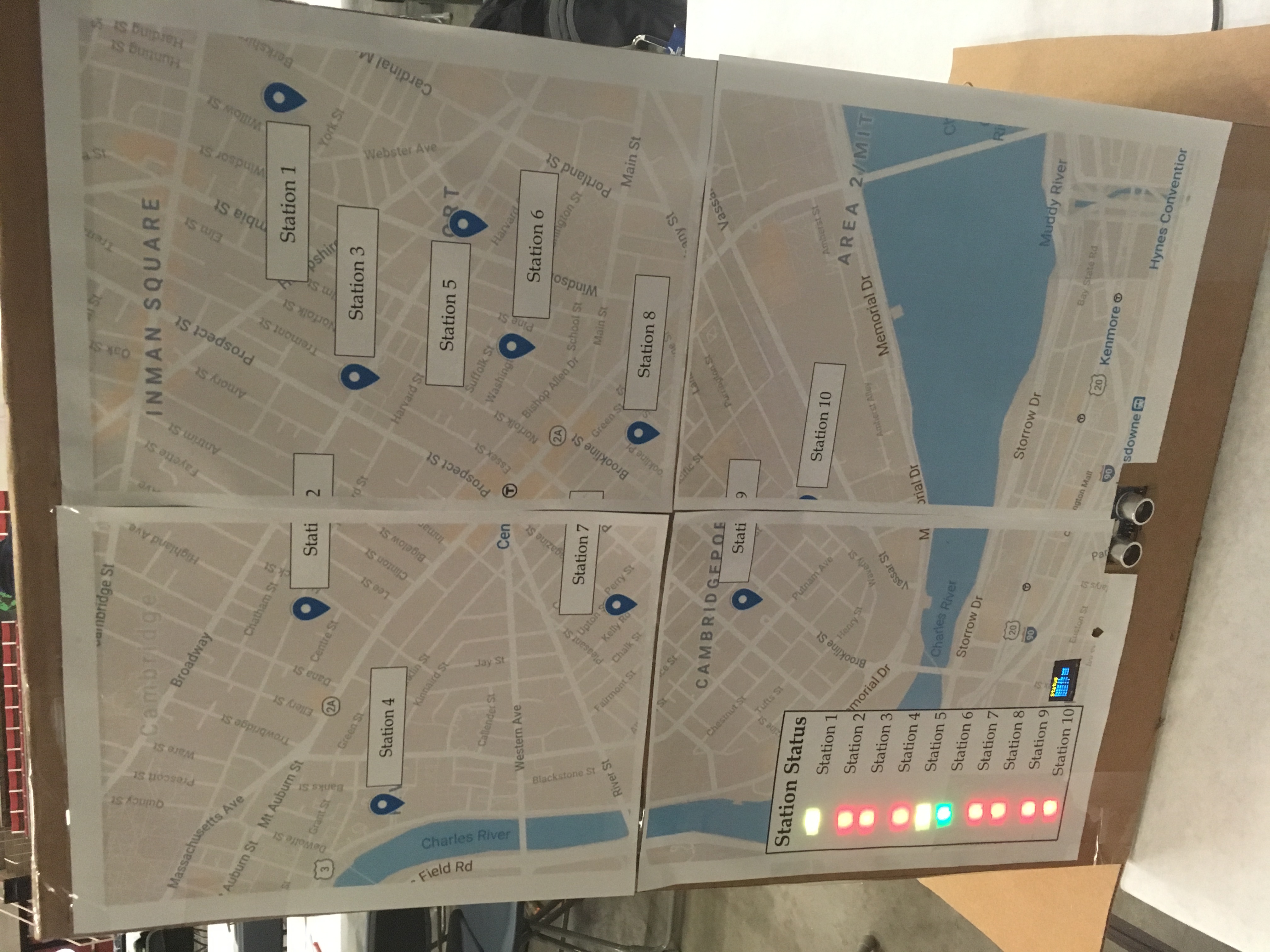 Due to time constraints, the kiosk is constructed out of cardboard, paper, packing tape, and prototyping electronics. Despite the low-grade construction materials, all functionality on the kiosk works as expected. The software was created with a React/Webpack/Flask/SQL stack on the localhost. We also used version control with Git