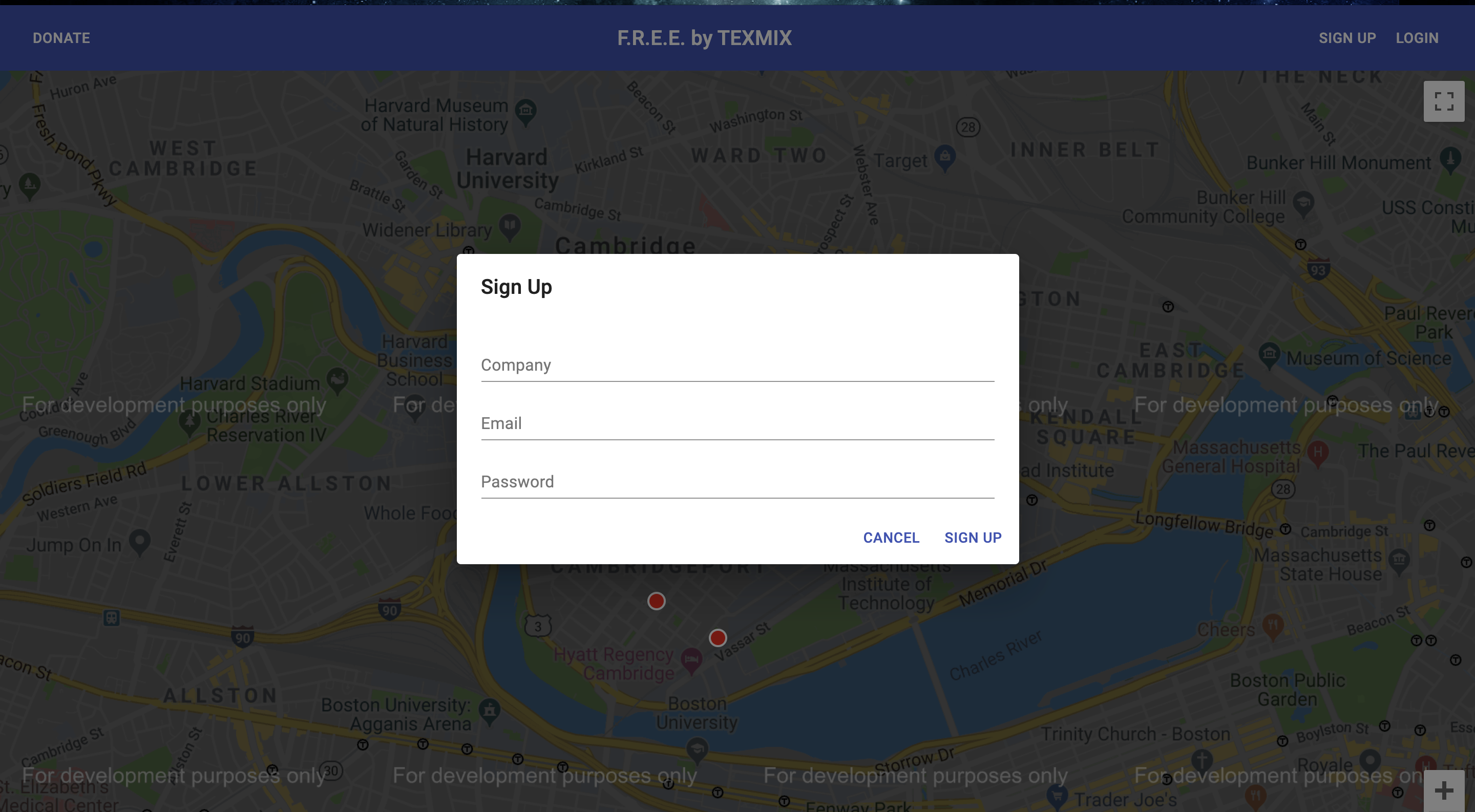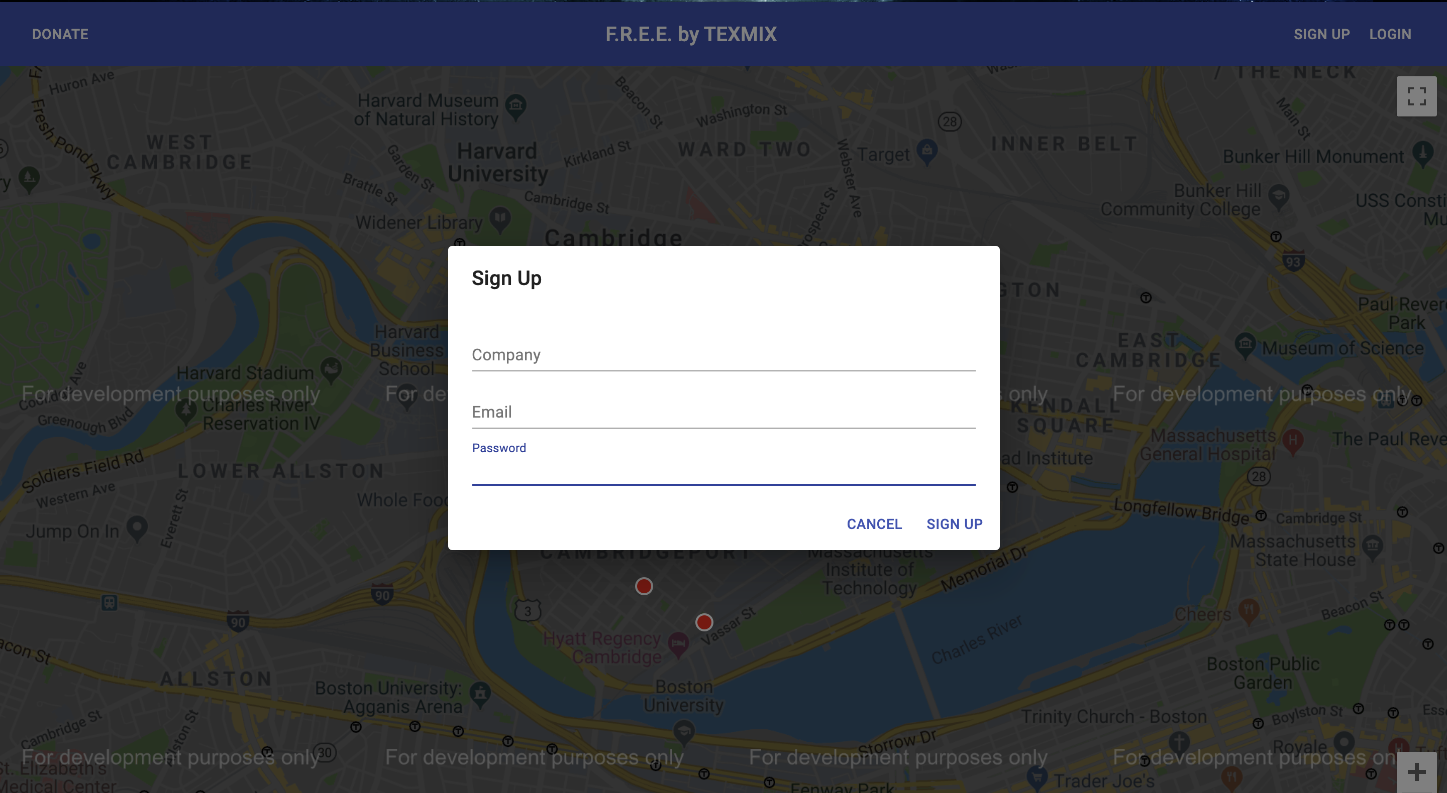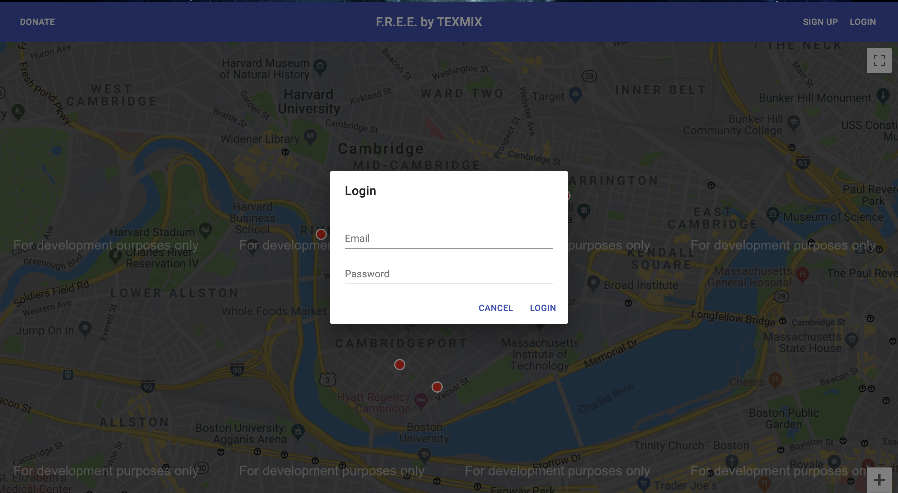 FREE(Food Distribution Effort for Everyone) is composed of three components: a web application, a network of interactive kiosks, and a cluster of computer-vision enabled cameras. The web application allows any vetted user to deposit food at any of our designated drop-off/pick-up stations(kiosks). The current implementation allows a user to donate and deposit food at any of the 10 drop-off stations in the Cambridge, Massachusetts area. This information is then sent to the kiosk(s) in the area, which displays live information about the food stations in its’ zone. Each station is represented by an RGB LED that changes color on a spectrum from red to green, giving quick information about which stations have more food than others. More in-depth information is displayed on an information panel at the bottom. When a user wants to get food from a station, they only need to tap on the station that they desire. Currently, only stations 1-5 have touch support due to a lack of available hardware. Lastly, the kiosks automatically enter standby mode when the user walks away to save power. The computer-vision enabled cameras, which have not been fully implemented, will recognize when a particular type of food is placed in a food station, automatically send that information to the kiosks, and give an approximate date of expiry for when the food needs to be removed from the station.