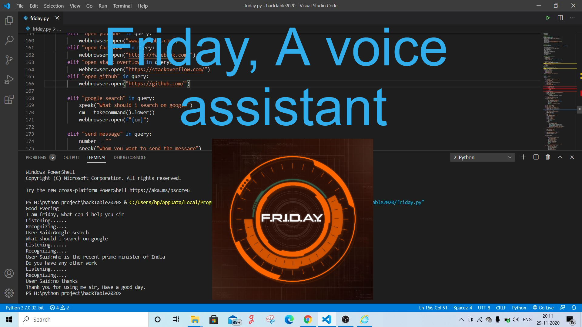 • You can play YouTube videos on the device. For this, you have to say “play youtube video on device”.Friday will download the song an play on GUI in 5 seconds