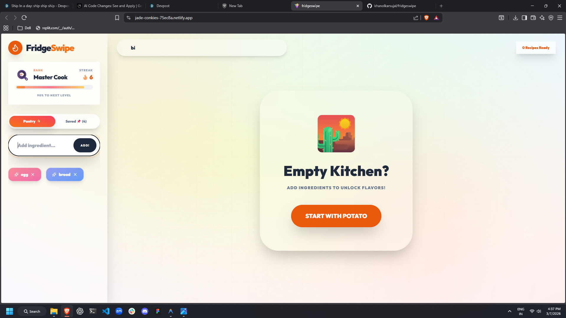 Through this project, I learned the importance of Niche UX. By focusing specifically on Indian households and their unique ingredients (like Aloo Paratha or Masala Omelettes), the app feels more personal and useful. I also leveled up my skills in advanced CSS layouts and component-based architecture.