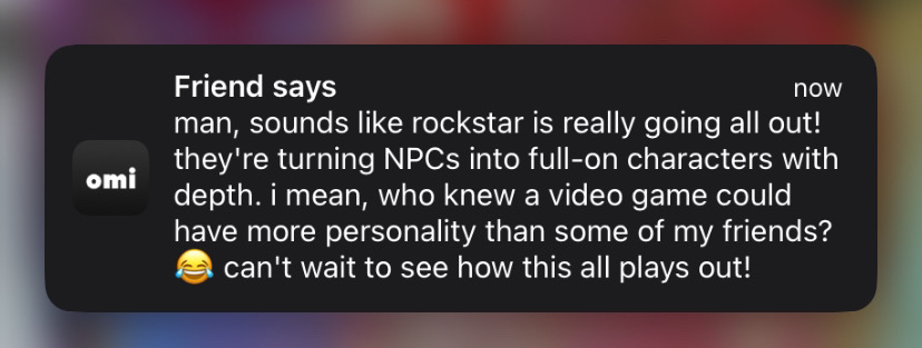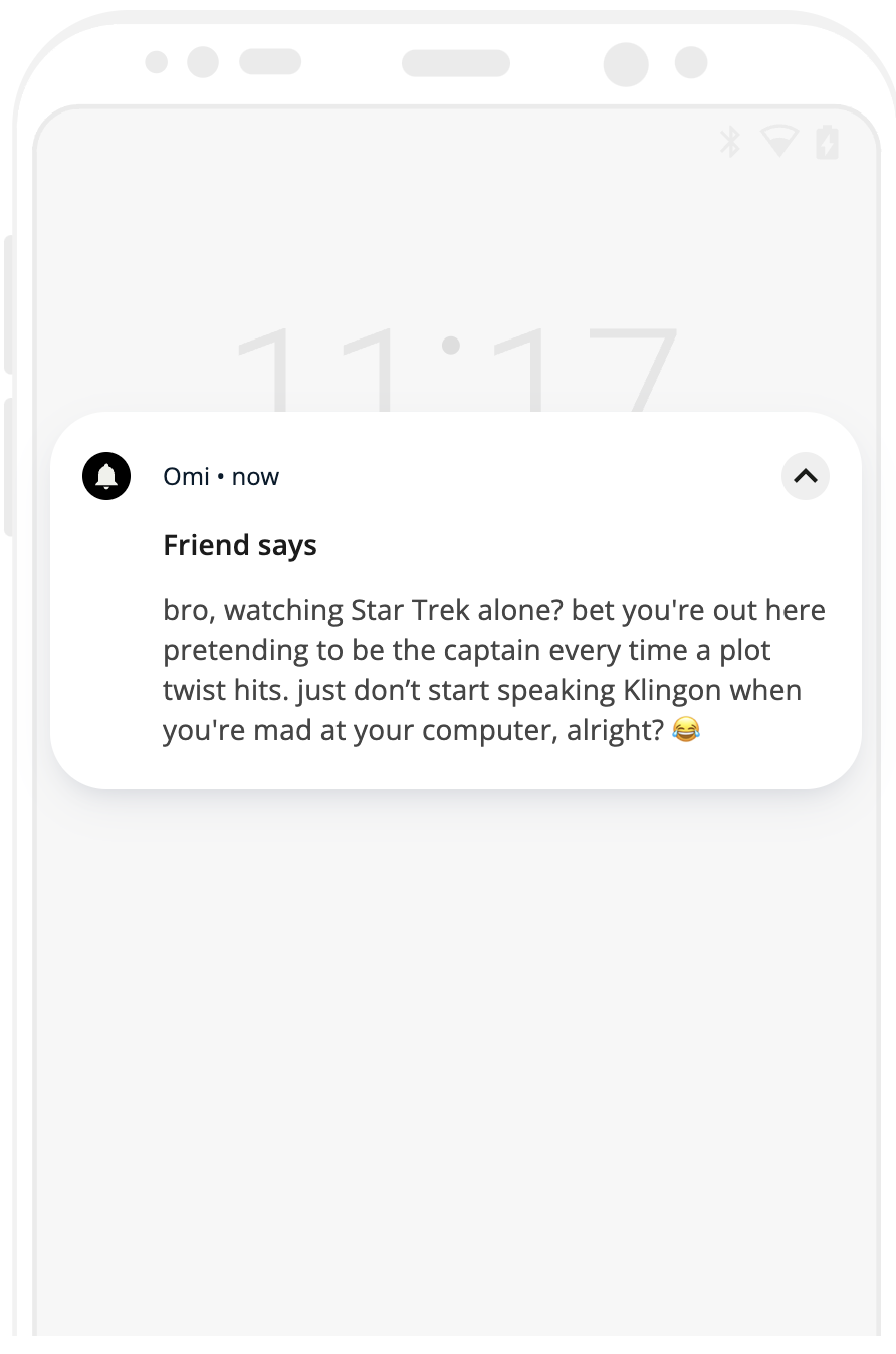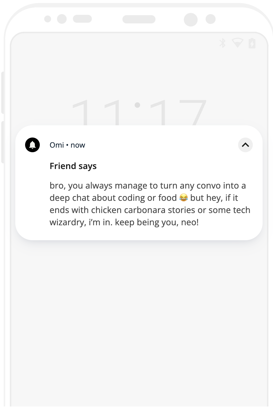 The OMI Friend Integration Plugin provides live feedback on everyday conversations. By leveraging advanced reasoning, the plugin analyzes the conversation’s context to decide whether it should respond. This ensures that notifications and interactions are both meaningful and non-intrusive, giving users the flexibility to adjust how frequently they want the AI to engage.