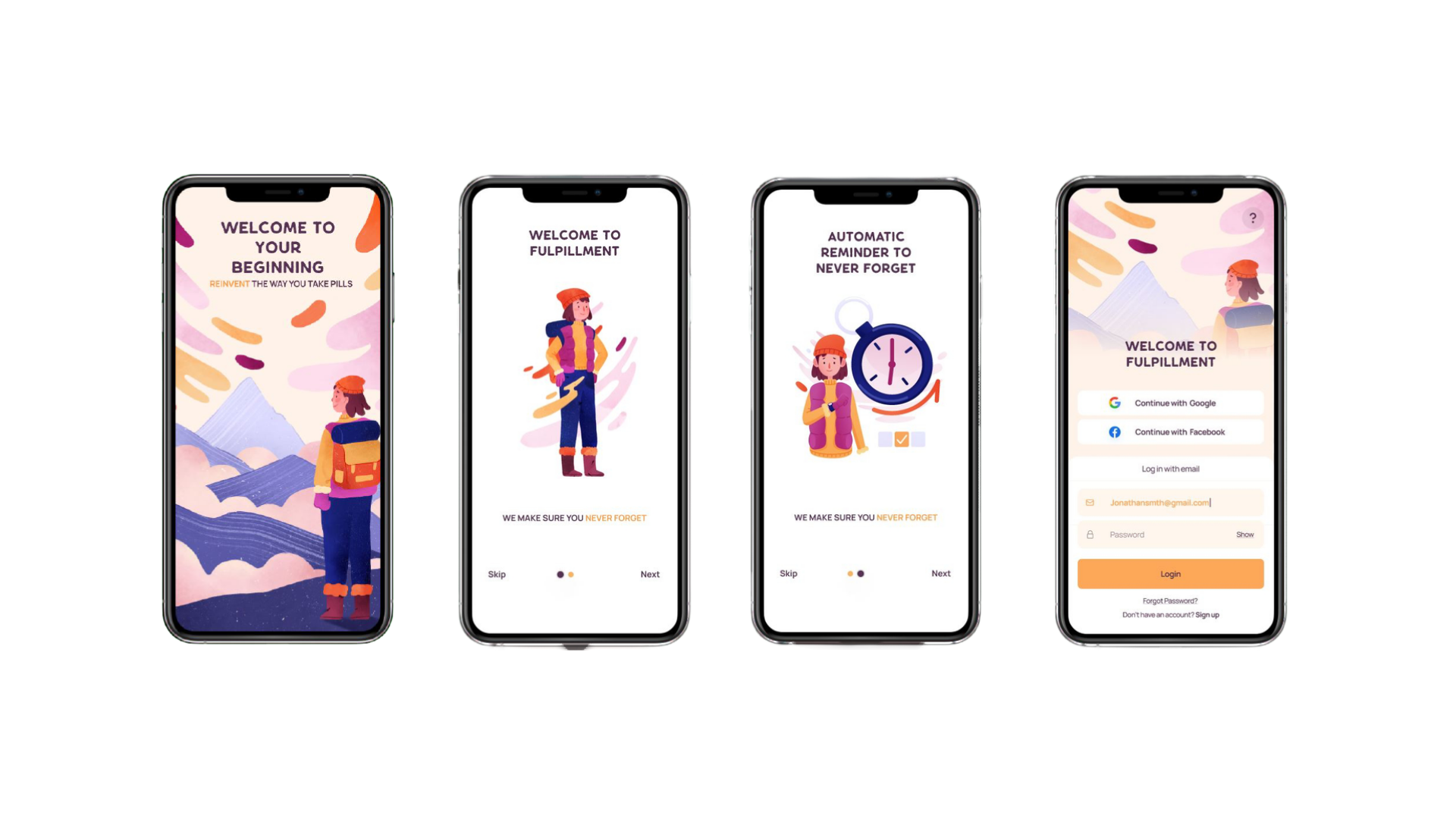 FulPillment has two parts: the physical product (the pillbox), and the companion app. Once the user downloads the app and links up the pillbox with the software, the user will be able to designate when they want to be sent notifications to take their pills. In addition, the app will track when the users take their pills and notify them via the software when they are running low.