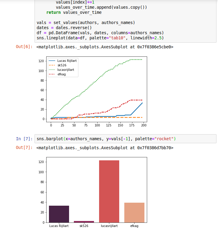 Using python jupyter notebooks and a few libraries to extract github statistics from a repository.