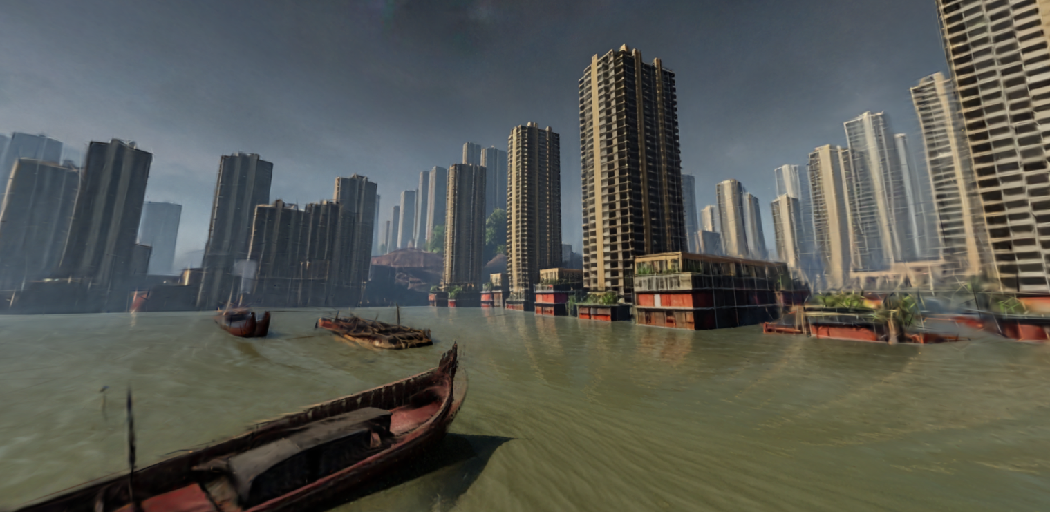 Accomplishments that we're proud of The caching system works well. Once you've generated a world, it's instant on reload. The panorama viewer with drag and zoom feels responsive and works on both desktop and mobile. And honestly, the worlds that come back from the API are striking; seeing a flooded skyline or a smog-choked city actually hits the way we wanted it to.