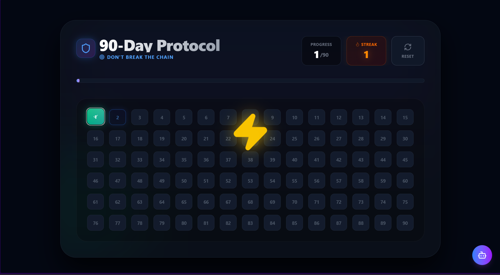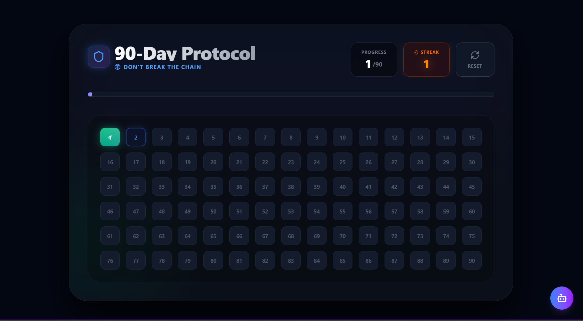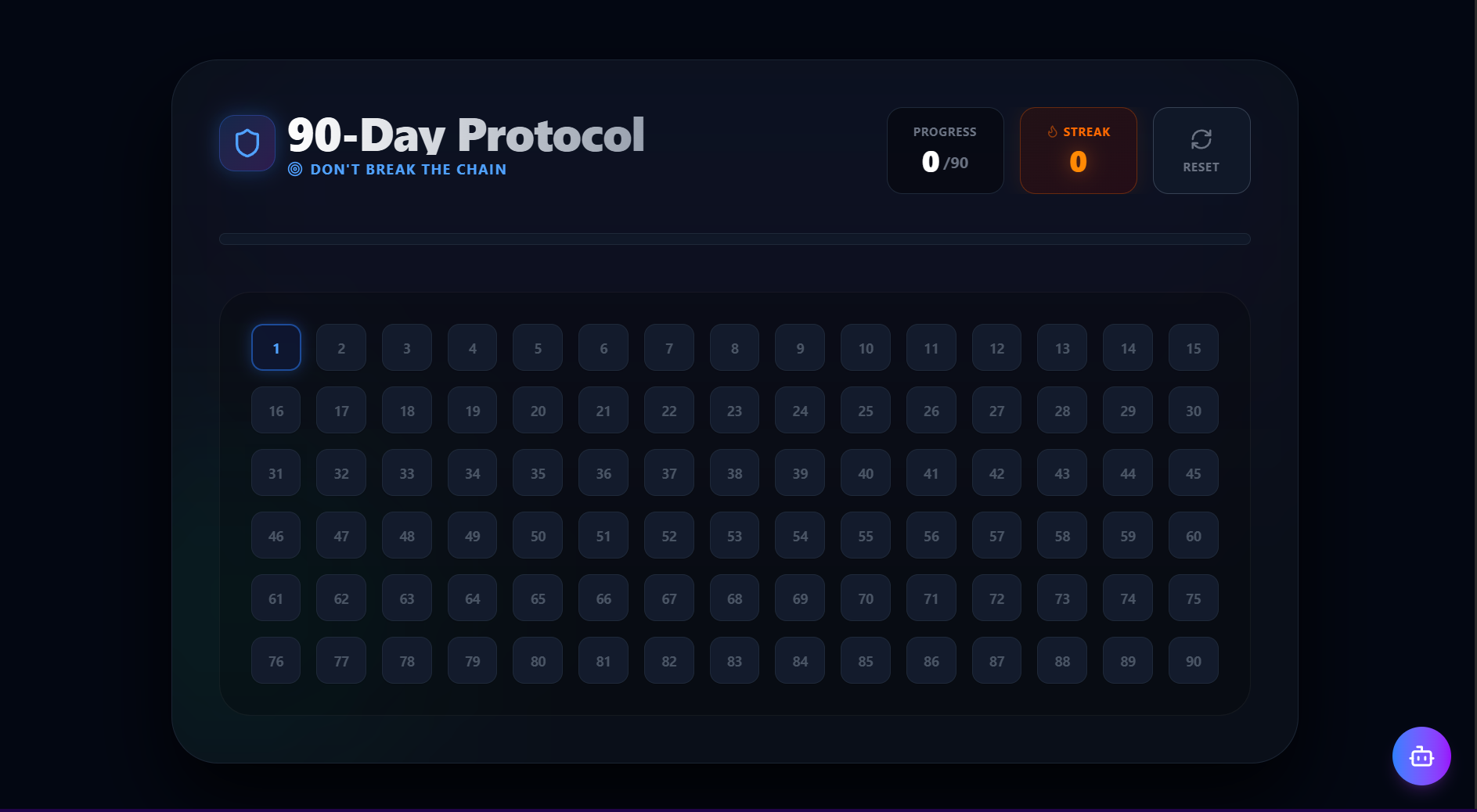 90-day protocol tracker designed to monitor daily progress and habit consistency.