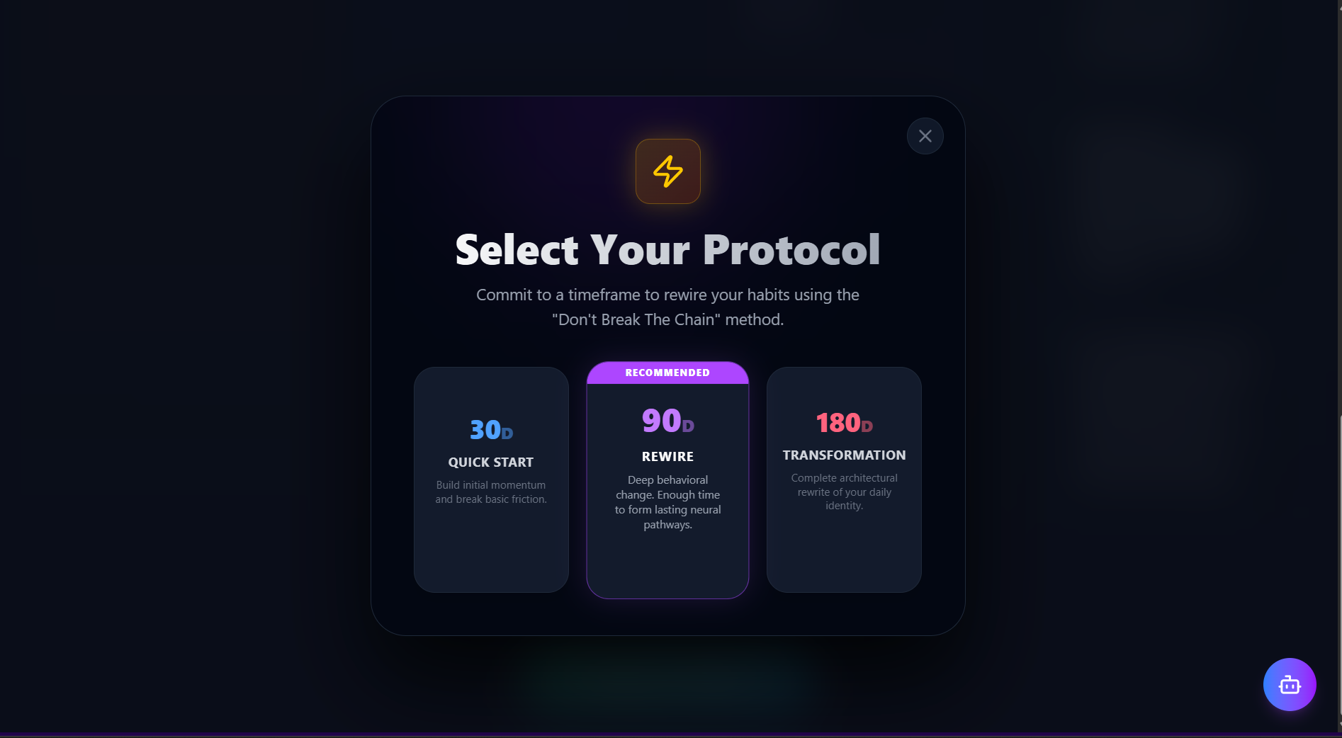 Choose your personal growth protocol to start a structured AI-guided improvement journey.
