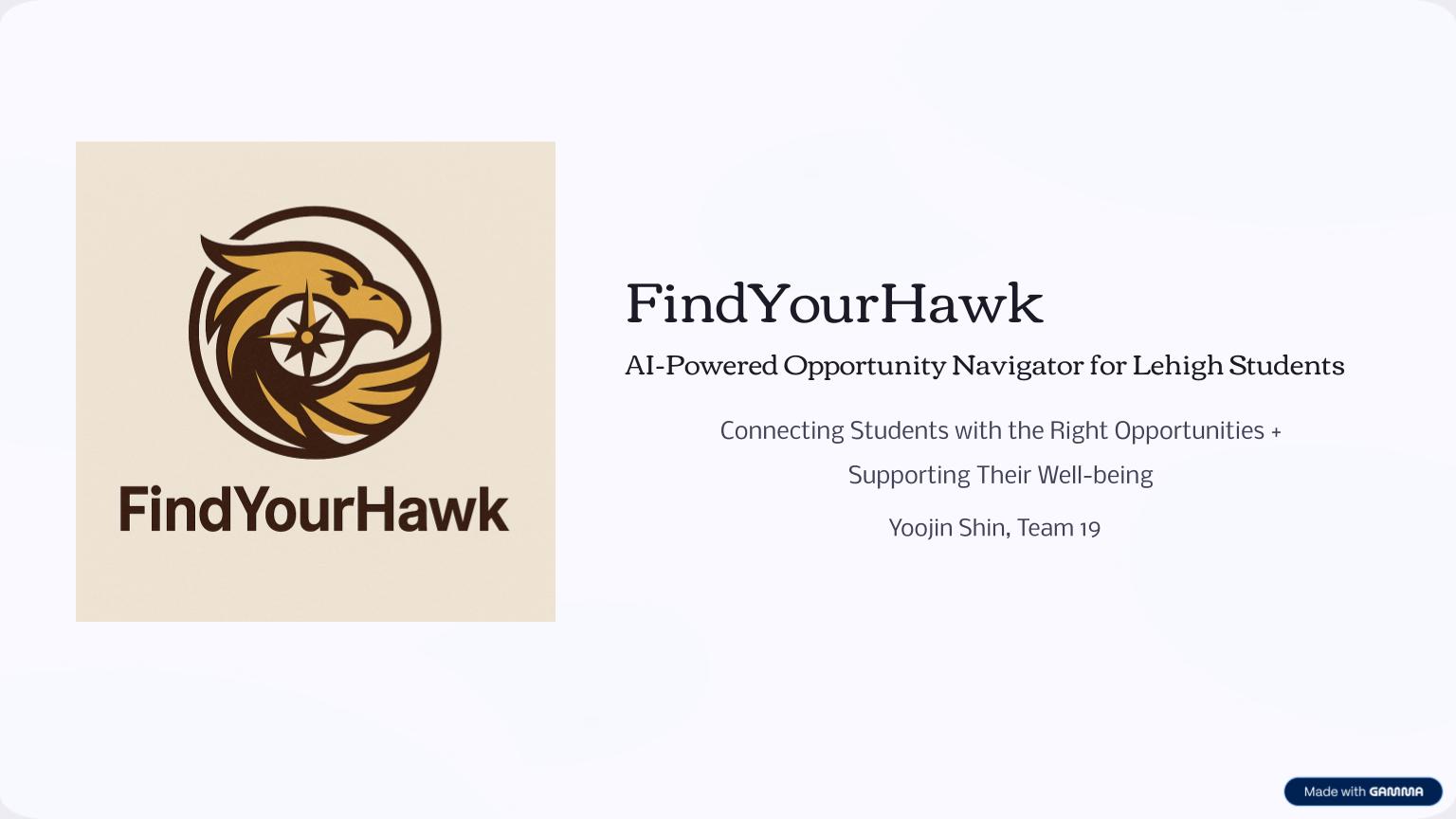🧭 What it does FindYourHawk is an AI-powered opportunity navigator for Lehigh students that provides: