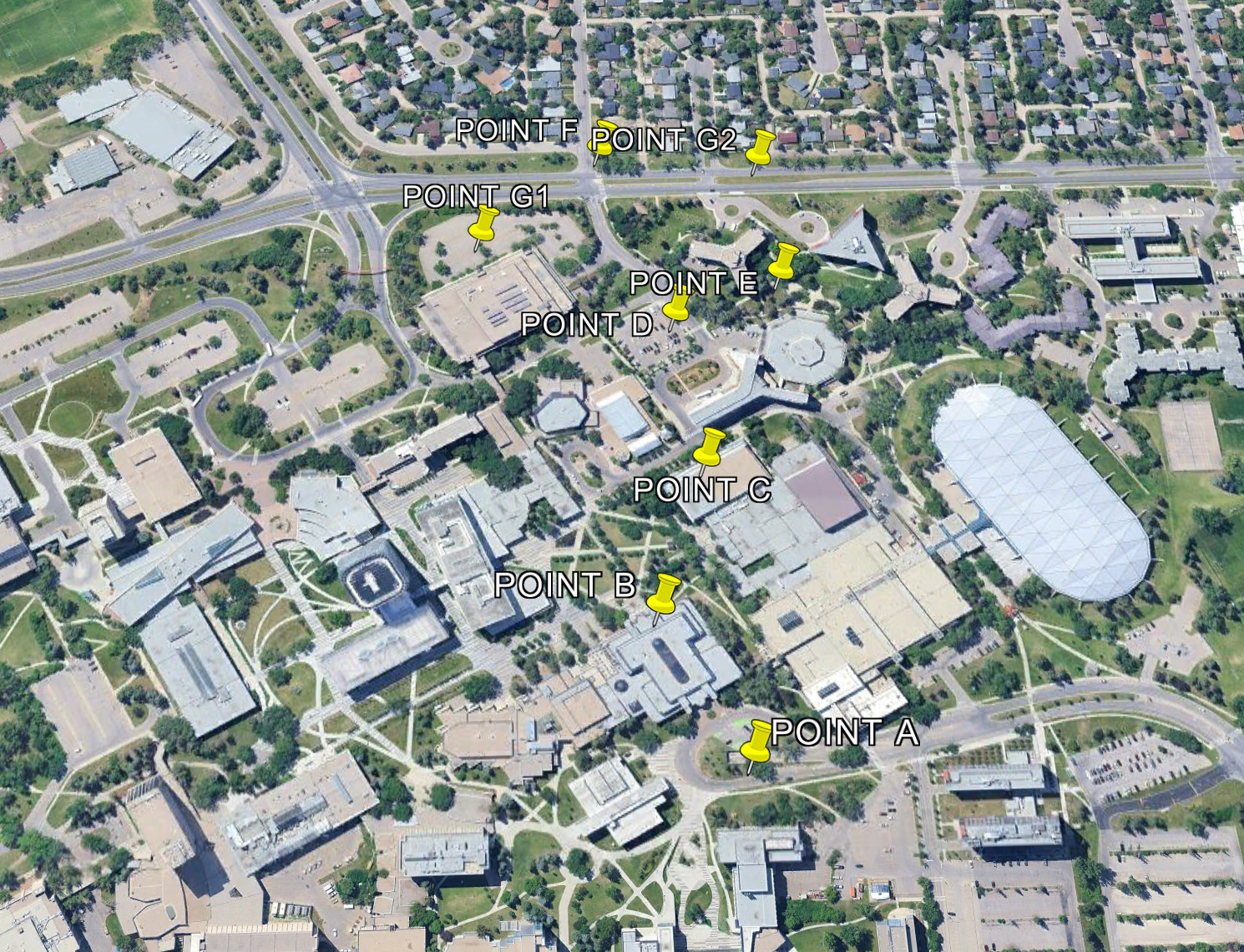 Shows a visual pattern with points on Google Earth.