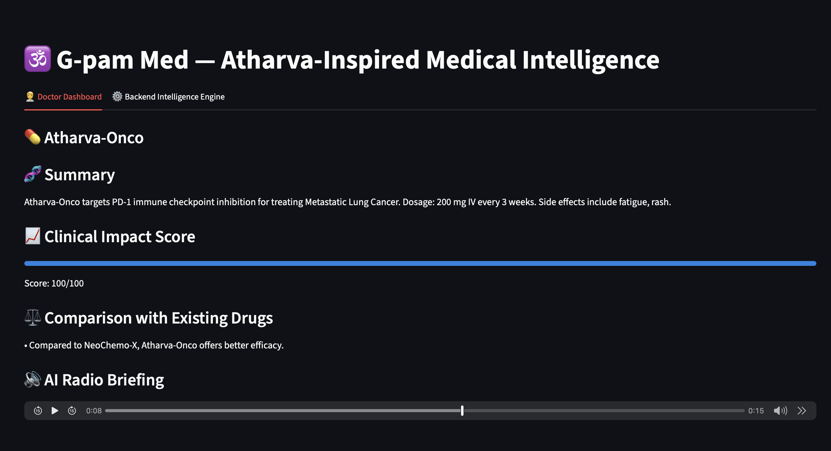 This whole thing kicked off after a real conversation with a group of doctors. We reached out to professors at a medical college, looking for honest feedback, and their responses honestly caught us off guard. Doctors aren’t struggling because they don’t have enough research. The problem is they’re drowning in it. Especially in oncology, there’s always something new—another drug, another study, new guidelines. Every week, it’s more of the same. But here’s the thing: doctors barely have time to breathe, let alone sift through every paper or keep tabs on every new drug that hits the market. Staying updated and making sense of what’s actually important? It’s almost impossible. What really stuck with us was how much AI has changed diagnostics and imaging. But when it comes to helping doctors manage all this information, nothing’s changed—it’s still a slog. Updates are scattered everywhere. There’s a bit in a research article, something else hidden in a regulatory report, and maybe a random email from a pharmaceutical company. No one has time to chase it all down. That’s where this idea was born. What if doctors had a clinical intelligence assistant in their corner? Something that quietly tracked the latest developments, broke down complicated info, and served it up in a way that actually makes sense—quick summaries, audio updates, short videos. It’s not about replacing doctors or their expertise. It’s about making their lives a little easier, so they can focus on what matters: giving patients better care.