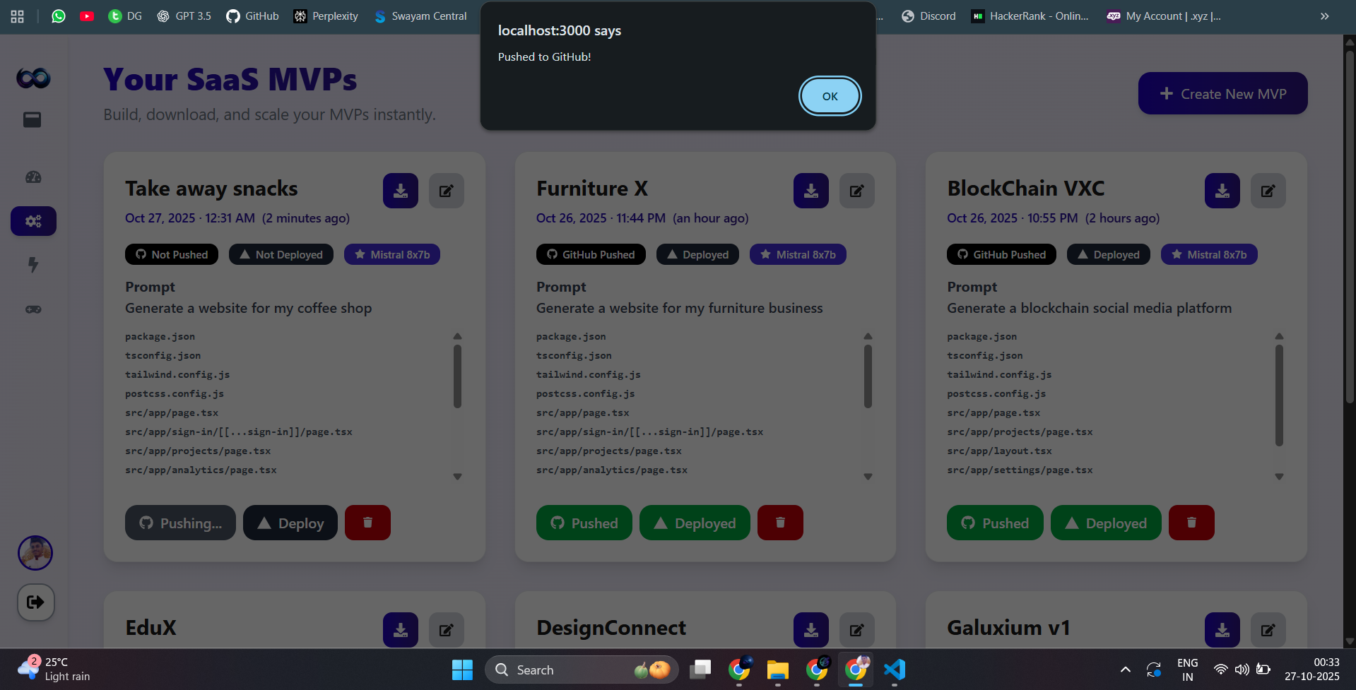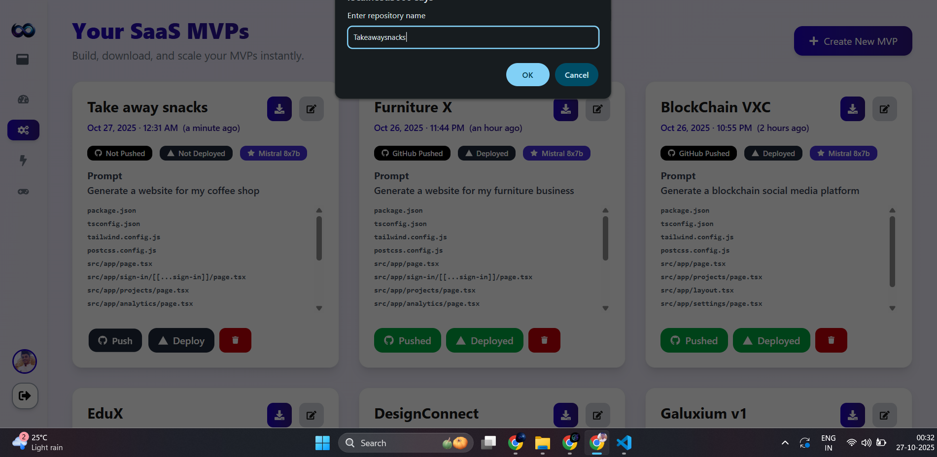 Every founder dreams of turning ideas into real startups — but the process is painfully slow. It takes weeks or months to validate an idea, design branding, write code, and build a product — often before even knowing if it’s worth pursuing.