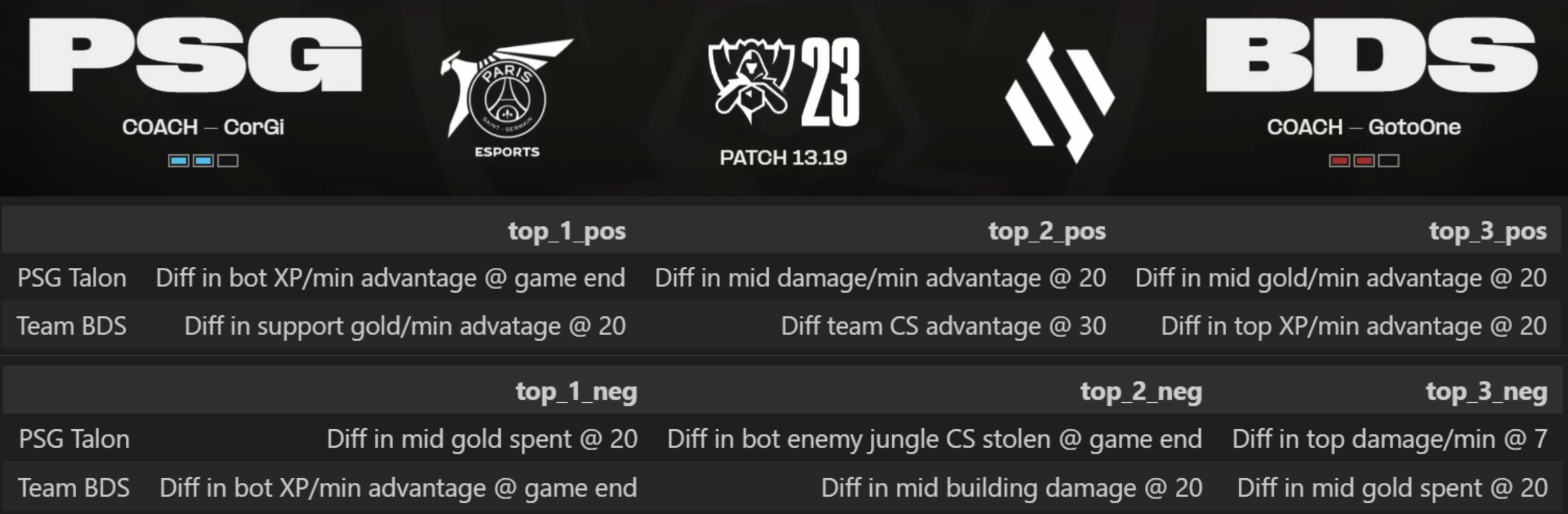 The key accomplishment is a systematic manner for understanding which granular features impact an upcoming match at the team-specific level. Additionally, by studying the joint set of strengths and weaknesses in team matchups, we can obtain a sense of how different playstyles interact.