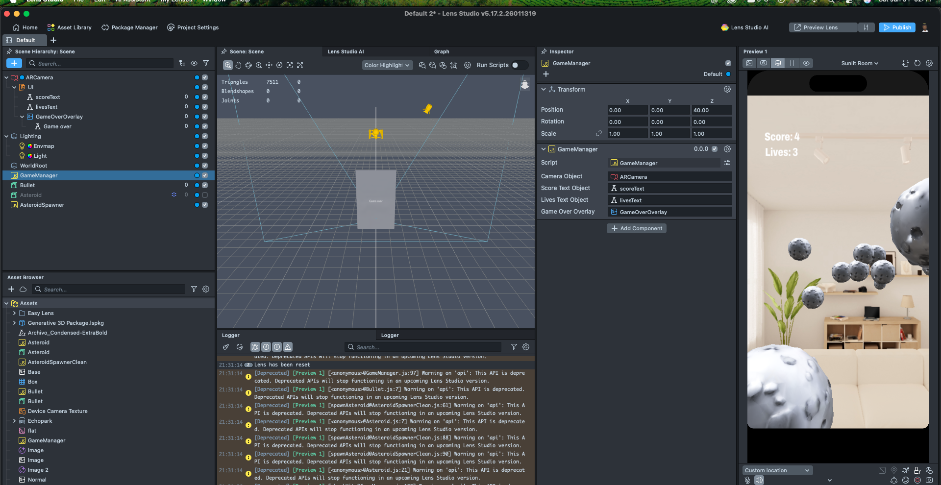 I built the entire project natively in Lens Studio using JavaScript.